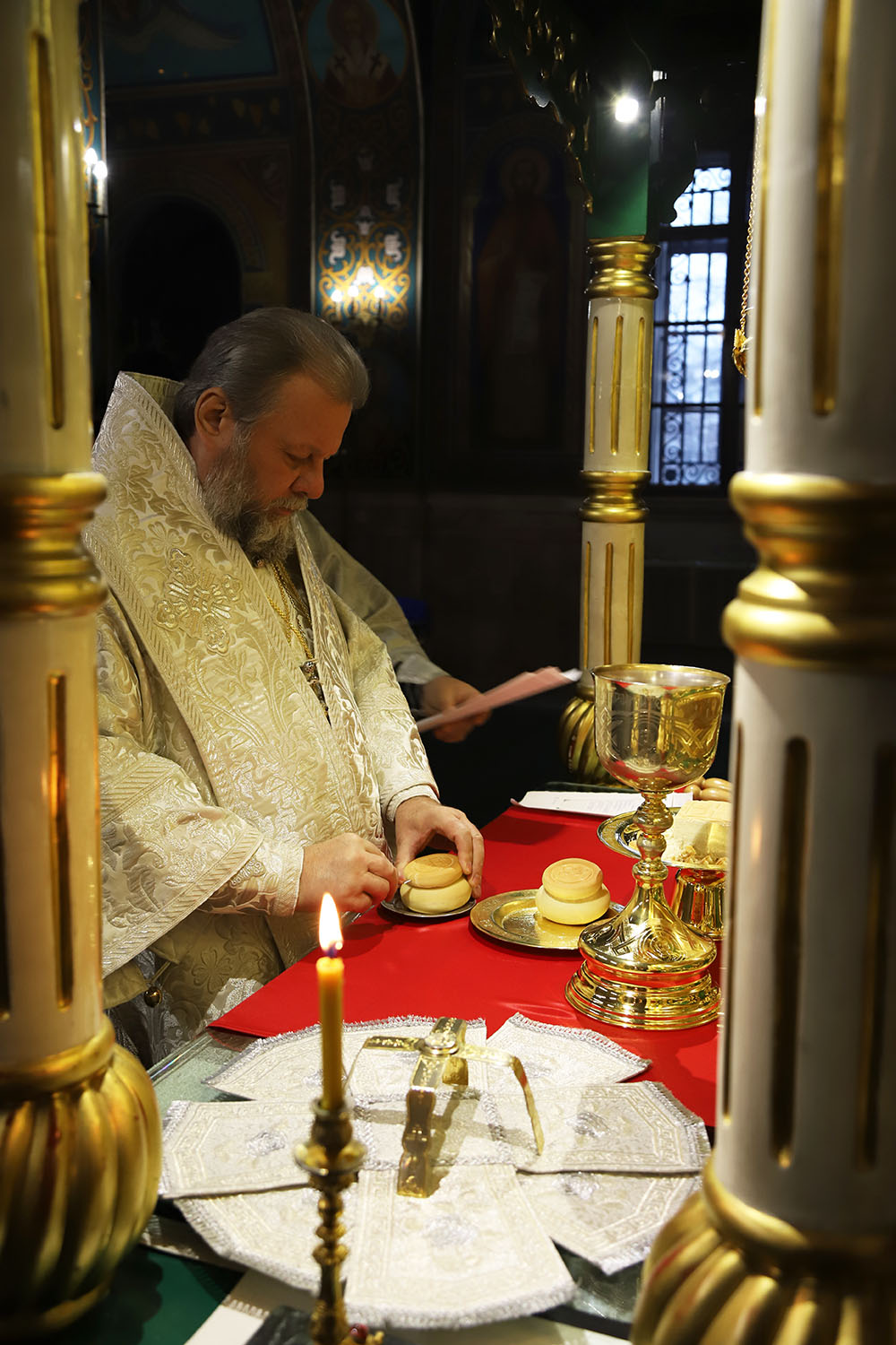 Проповедь перед причастием произнес ключарь кафедрального собора Рождества Христова митр. прот. Вадим Кейбаш.