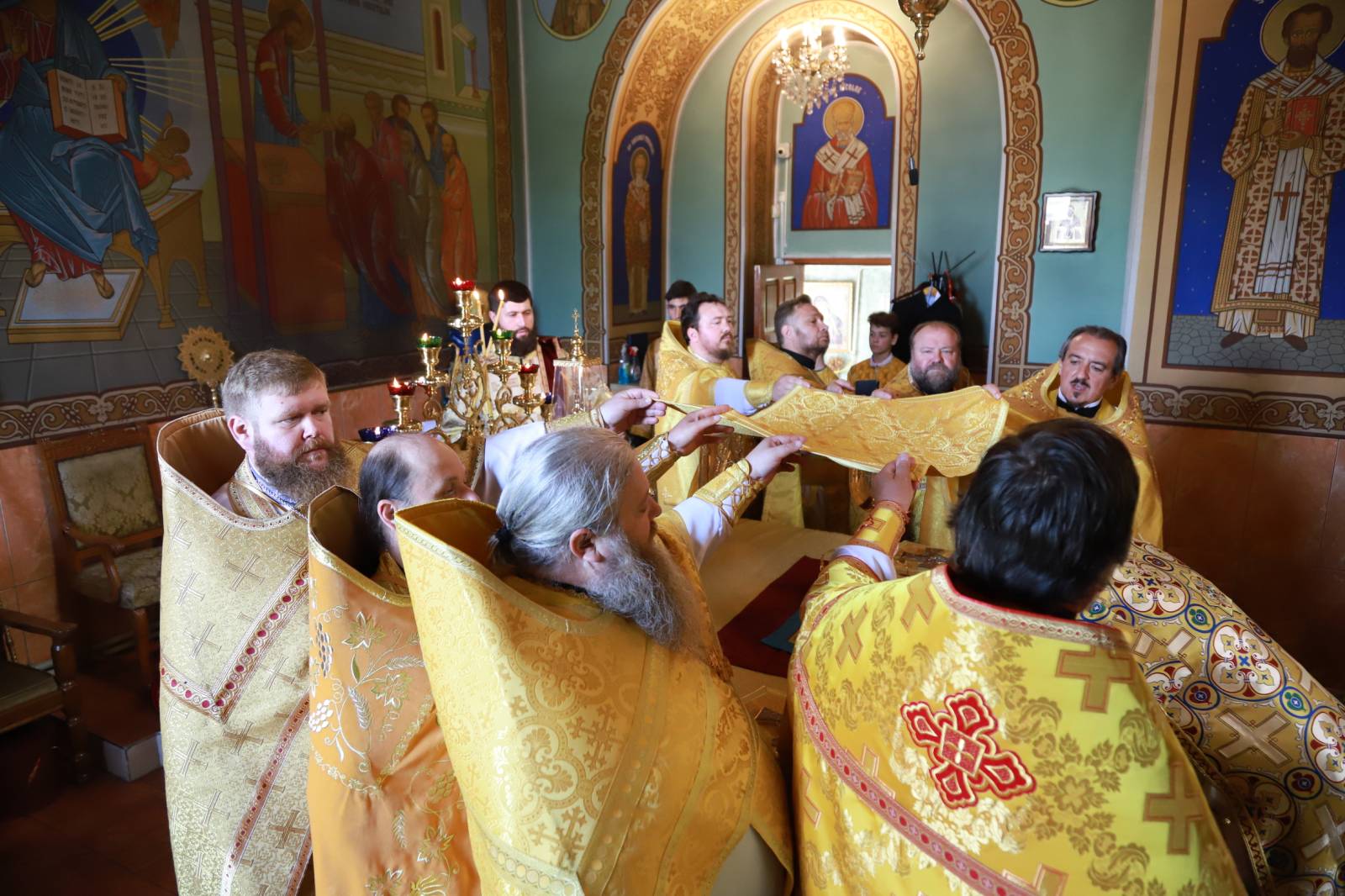 Его Высокопреосвященству сослужили: секретарь Молдавской митрополии и благочинный церквей Кишиневского муниципия (Сектор 1) митр. прот. Вадим Кейбаш, председатель Синодального отдела по взаимодействию с МВД, Вооруженными силами и Правоохранительными органами архимандрит Николай (Рошка), благочинный церквей Кишиневского муниципия (Сектор 3) митр. прот. Зосима Тоя, настоятель Цыганештского Успенского мужского монастыря архимандрит Иринарх (Костру), настоятель Никольского храма г. Крикова прот. Николай Андриеш, духовенство благочиния.