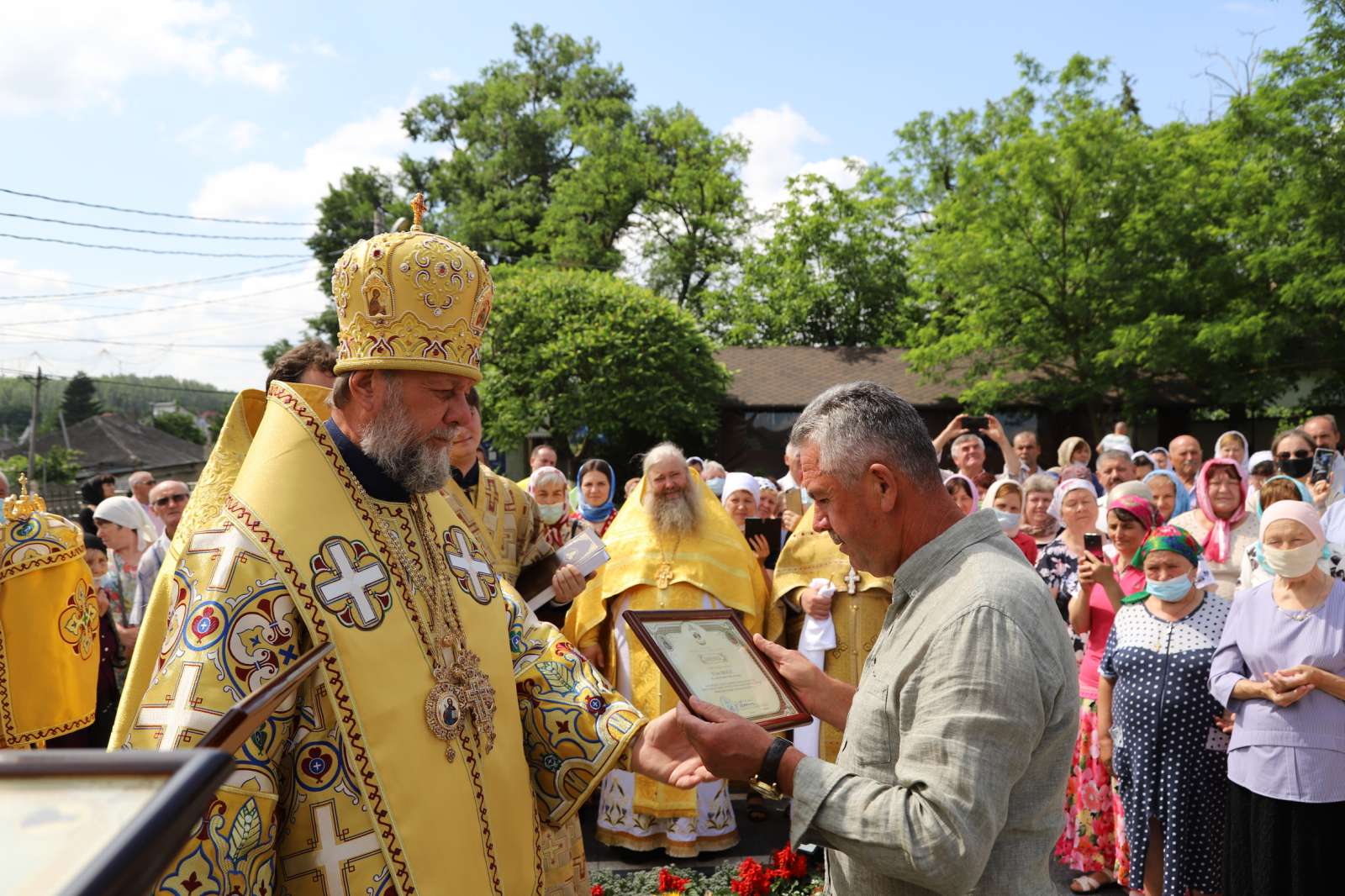 В завершении визита, глава Православной Церкви Молдовы Высокопреосвященный Митрополит Владимир удостоил отдельных благотворителей, жертвователей и ктиторов Никольского прихода высоких церковных наград и благословенных архиерейских грамот.