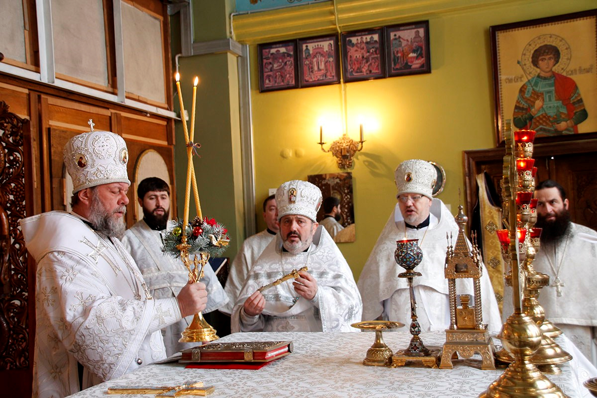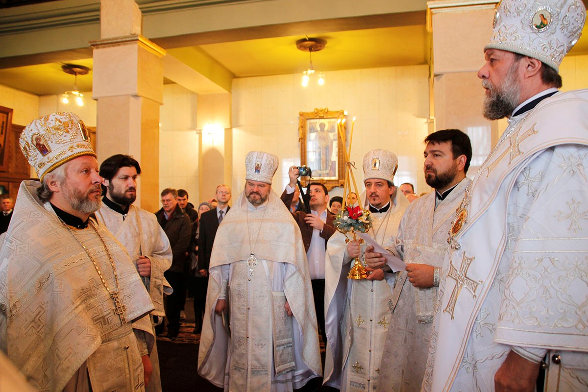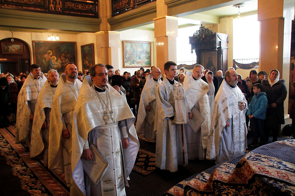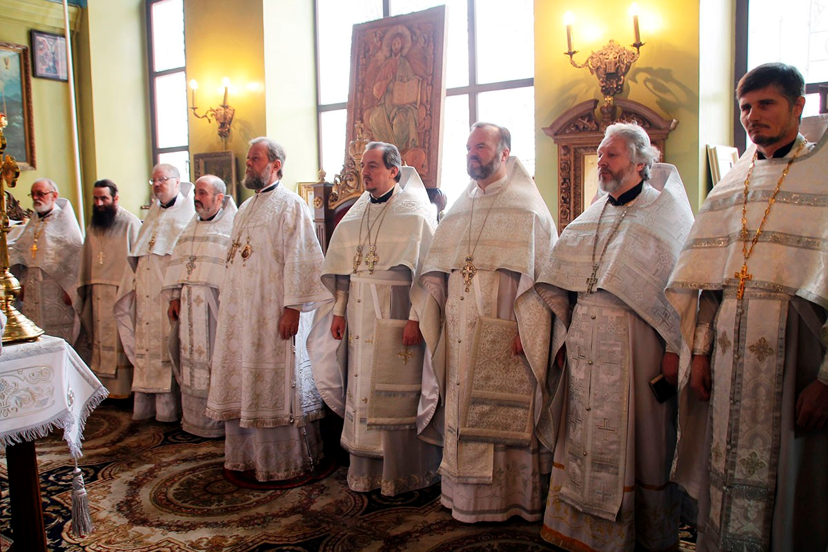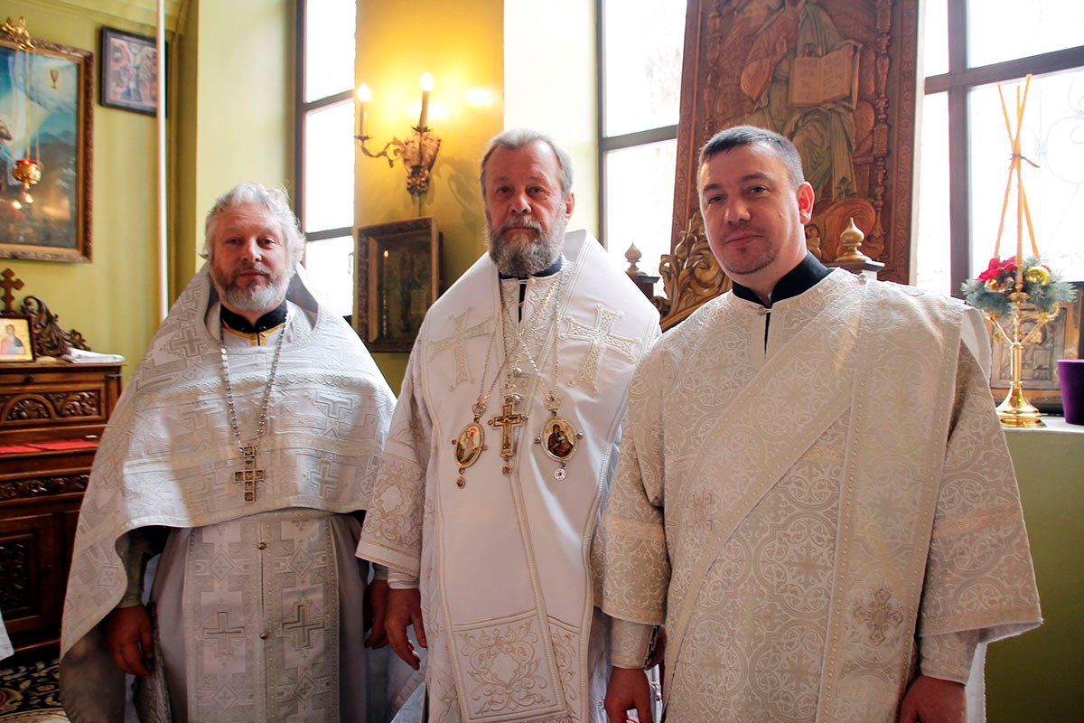 Его Высокопреосвященству сослужили: секретарь Кишиневско-Молдавской митрополии митр. прот. Вадим Кейбаш, настоятель Никольского храма г. Кишинева митр. прот. Петр Сторожа, благочинный церквей 2-го сектора Кишиневского муниципия митр. прот. Павел Боршевский, настоятель Георгиевского храма г. Кишинева митр. прот. Николай Флоринский, духовенство Кишиневского благочиния и клирики Никольского храма.
