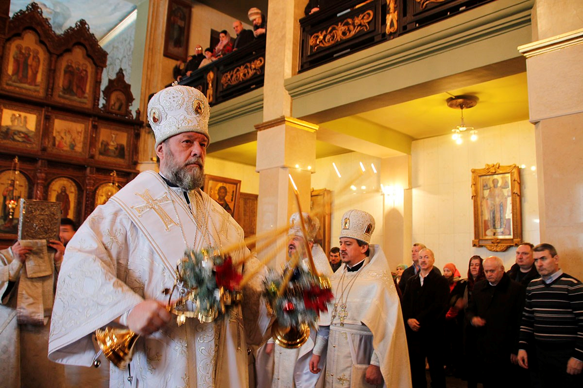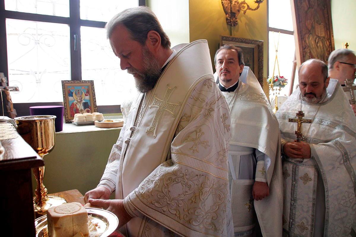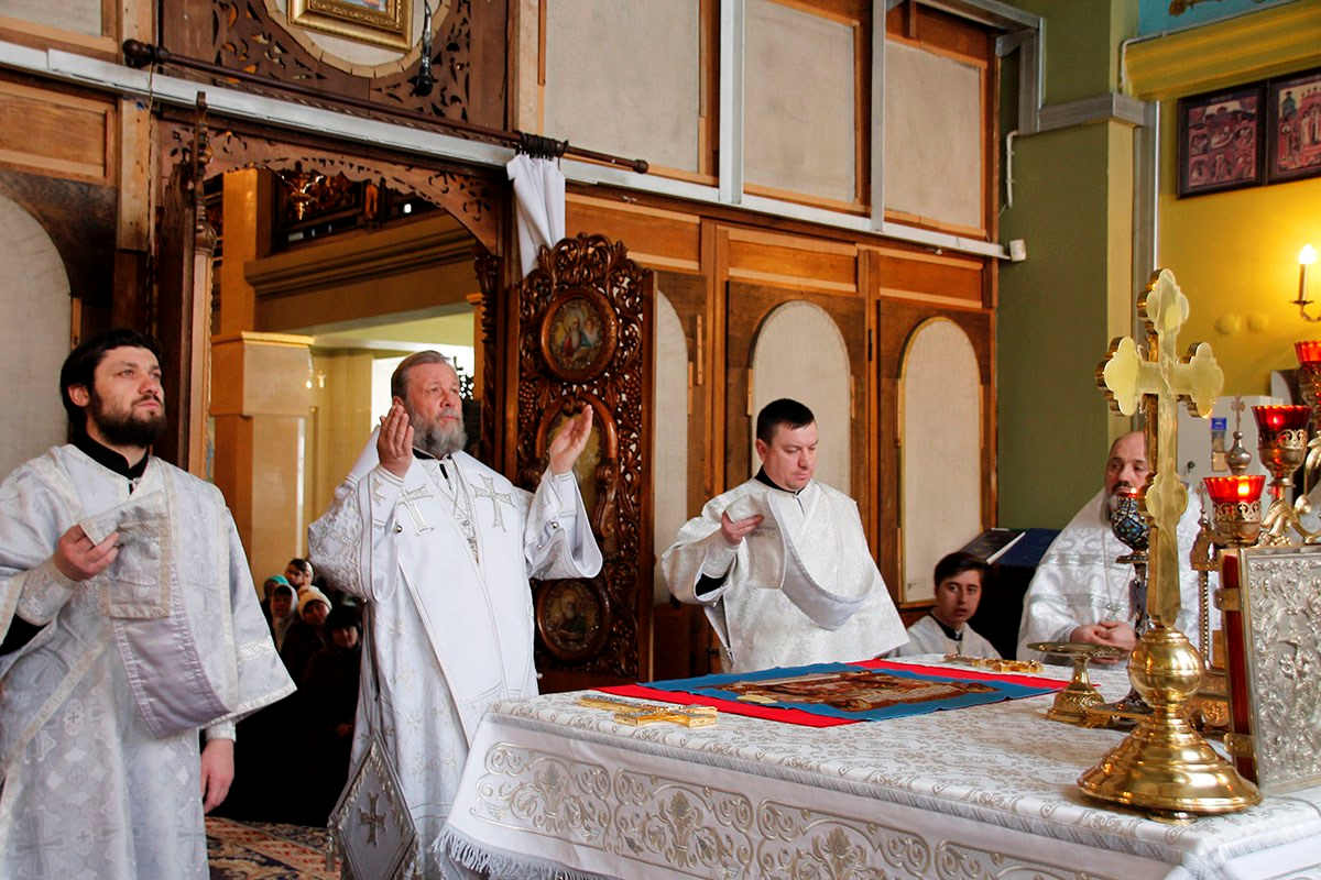 Богослужебные песнопения исполнял большой хор Никольского храма под управлением регента пресвитеры Ноны Боршевской.