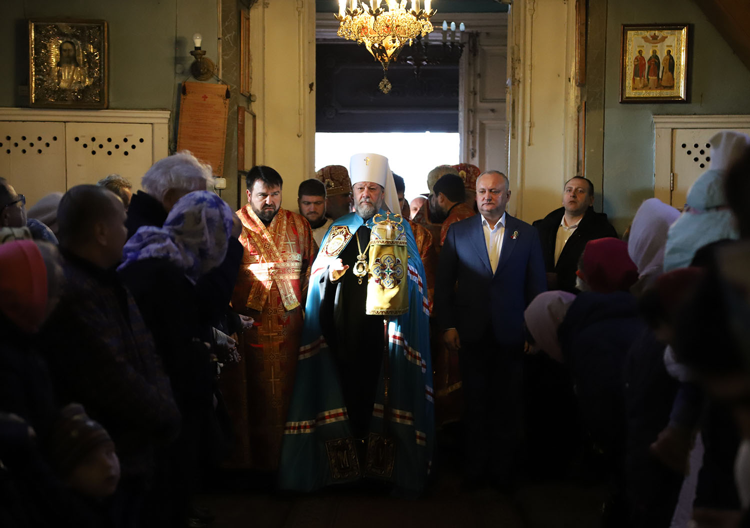 На богослужении вместе с многочисленными богомольцами присутствовали Президент Республики Молдова Игорь Додон, министр Обороны РМ Виктор Гайчук и министр МВД РМ Павел Войку и другие официальные лица.