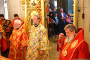 В завершение, все присутствовавшие за Литургией богомольцы имели возможность поклониться святыням, доставленным накануне в обитель к престольному празднику — ковчегу с частицам честных мощей святой блаженной Матроны Московской и святителя Спиридона Тримифунтского.