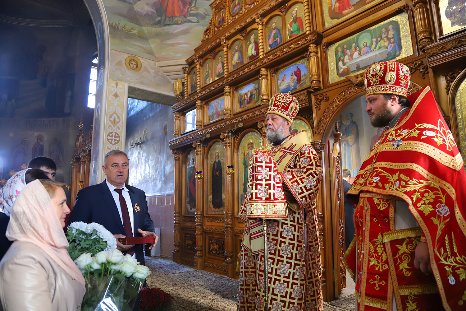 По окончании Литургии, Митрополит Владимир в сослужении собора священнослужителей совершил благодарственный молебен, после чего обратился к присутствующим с архипастырским словом. Его Высокопреосвященство выразил слова сердечных поздравлений митр. прот. Николаю Тудоряну в связи с празднованием юбилейной даты — 15-летием иерейского хиротонии, отметив его многочисленные прекрасные достижения на поприще пастырского служения и главные события на этом пути.