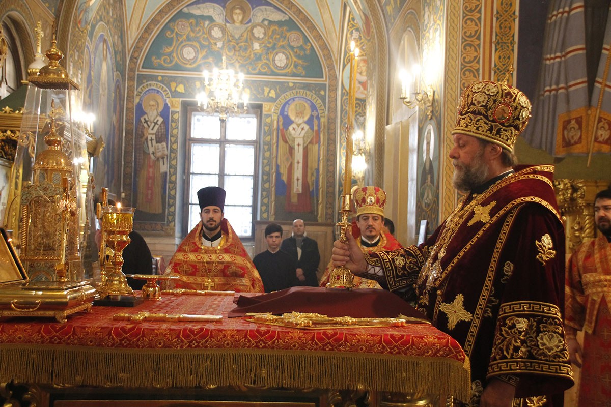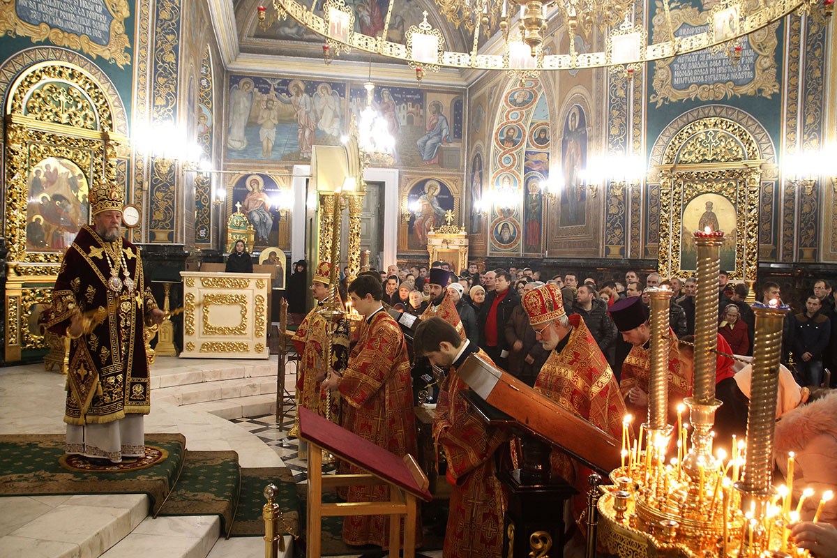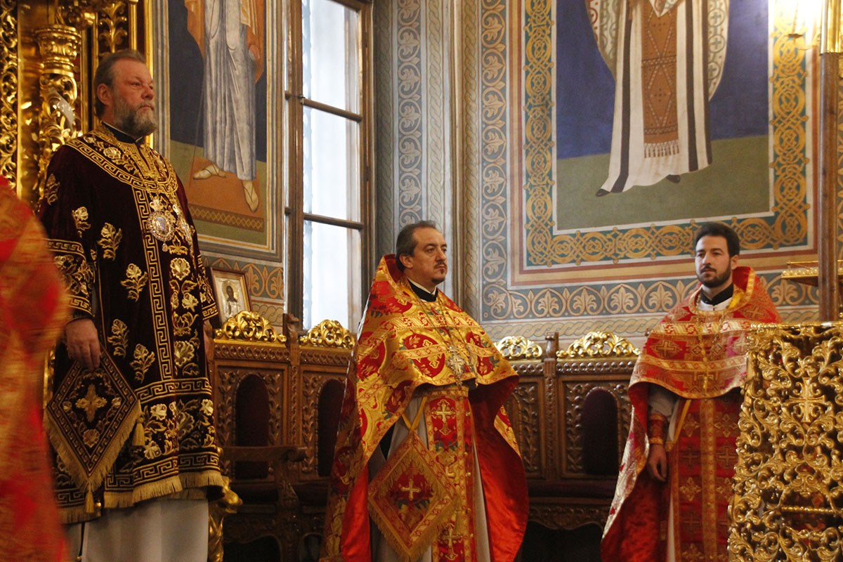 Его Высокопреосвященству сослужили: секретарь Кишиневско-Молдавской митрополии митр. прот. Вадим Кейбаш, соборное духовенство.