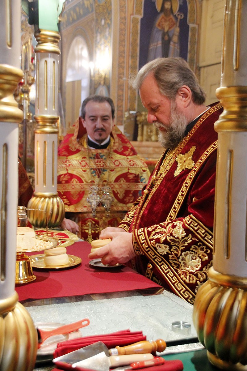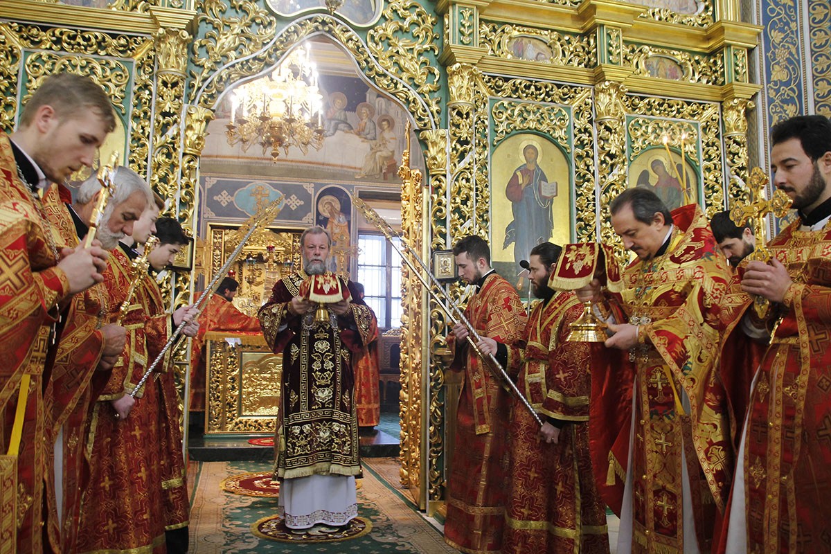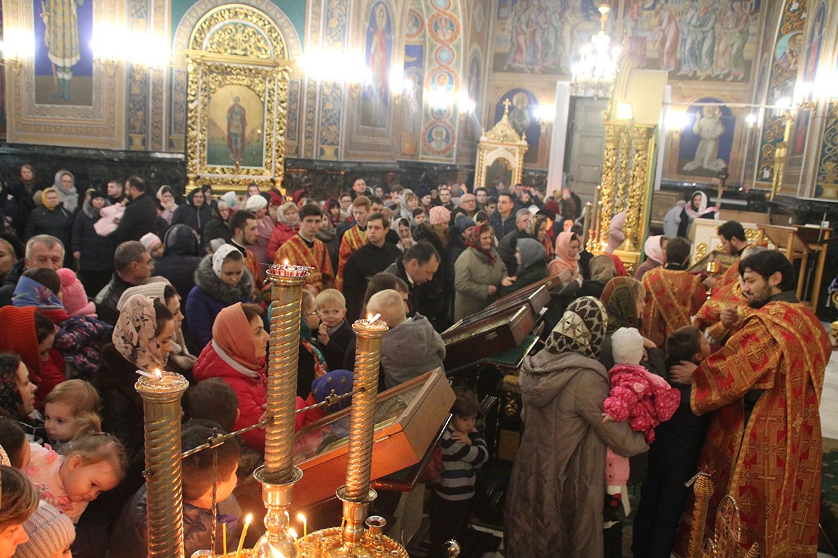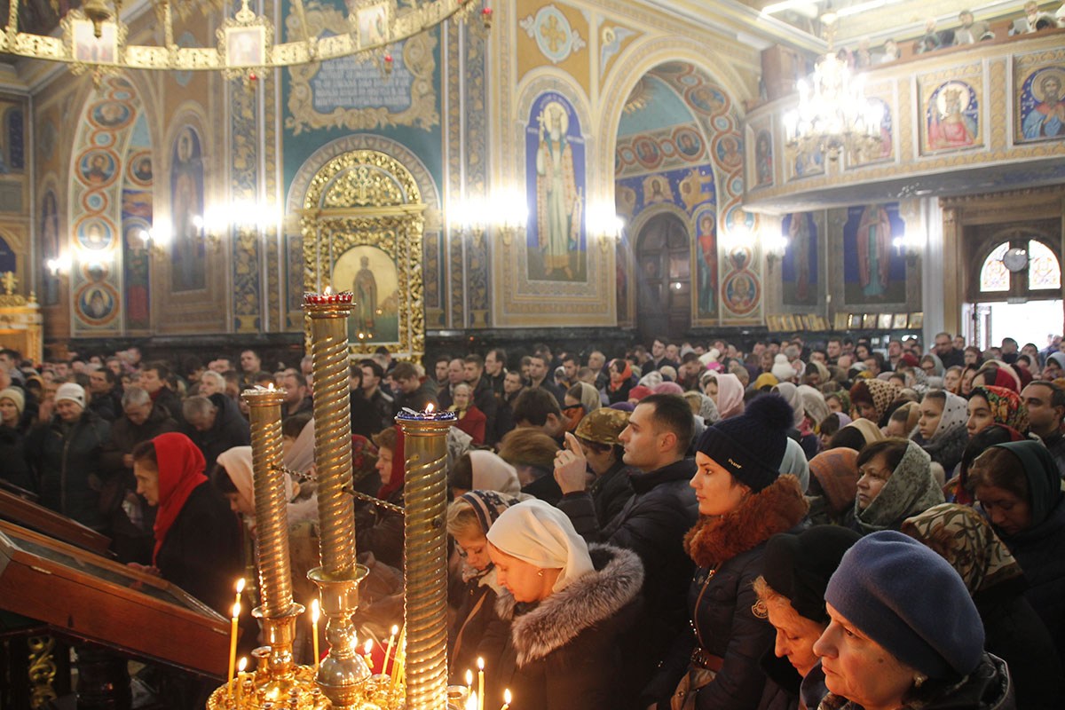 Богослужебные песнопения исполнял большой соборный хор под управлением регента Ангелины Павлюченко.
