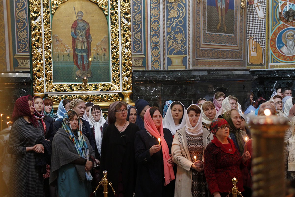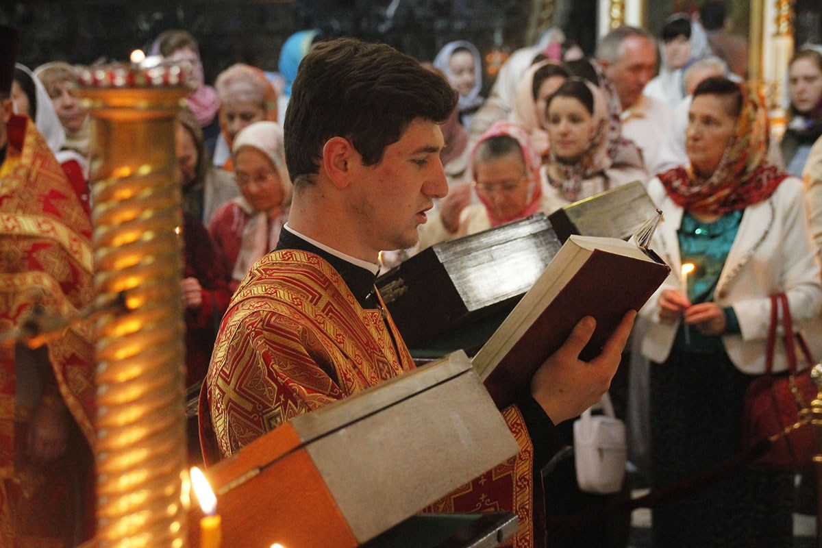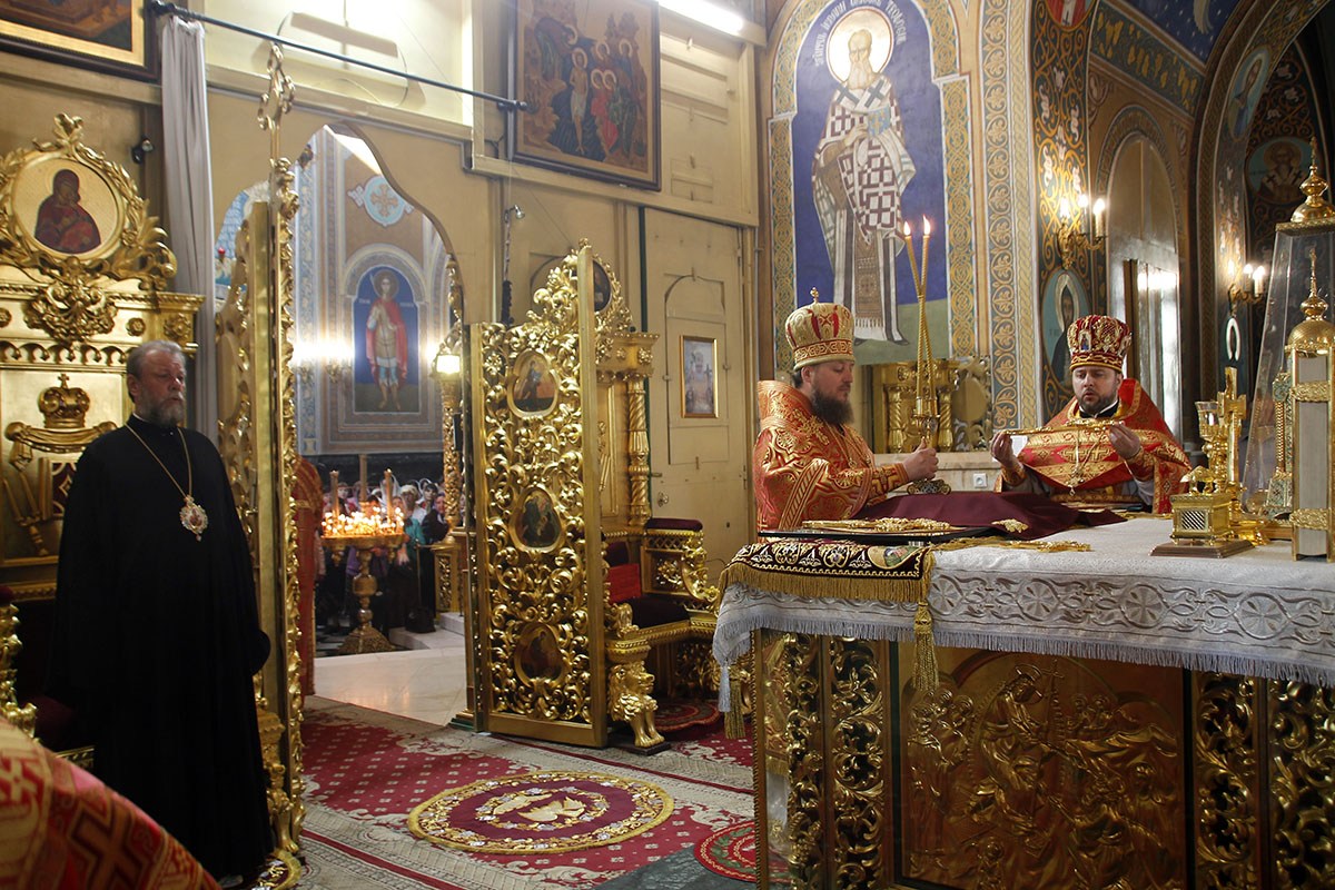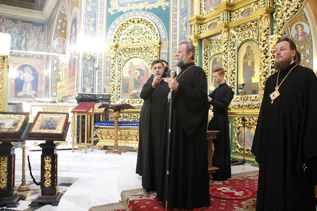 Богослужебные песнопения исполнял большой соборный хор под управлением регента А. Павлюченко.