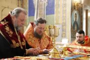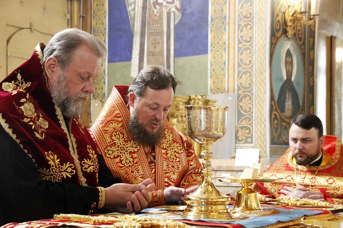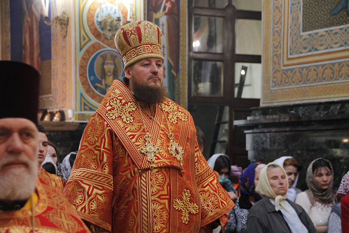 Преосвященному епископу Сорокскому Иоанну сослужили секретарь Кишиневско-Молдавской митрополии митр. прот. Вадим Кейбаш и соборное духовенство.