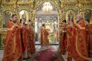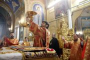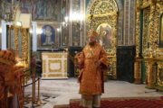 Глава Православной Церкви Молдовы Высокопреосвященный Митрополит Владимир молился в алтаре за Литургией.