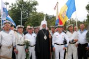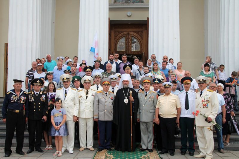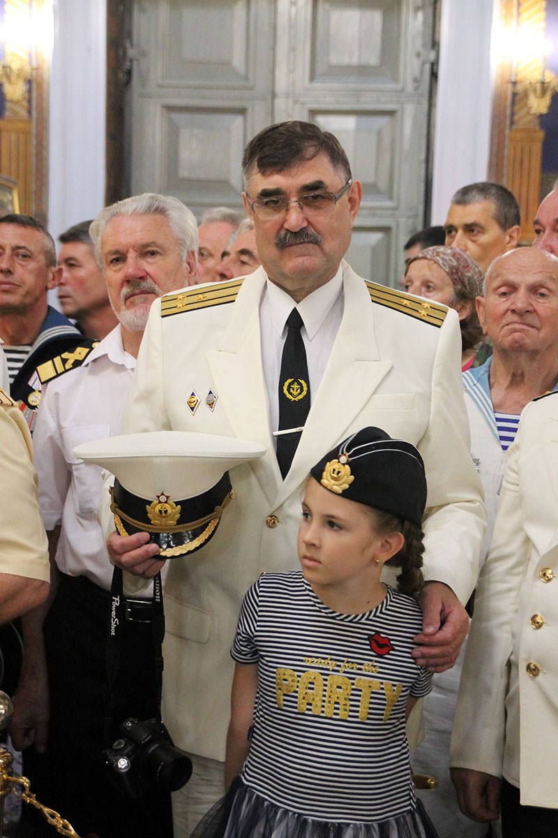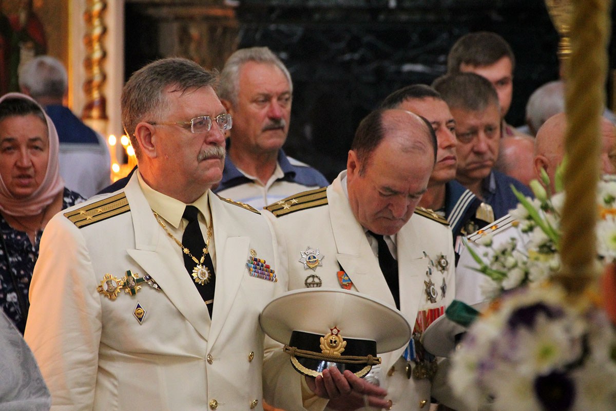 За Литургией вместе с многочисленными верующими молились ветераны Военно-морского флота при параде, которые по сложившейся доброй традиции ежегодно присутствуют на богослужении в этот день.