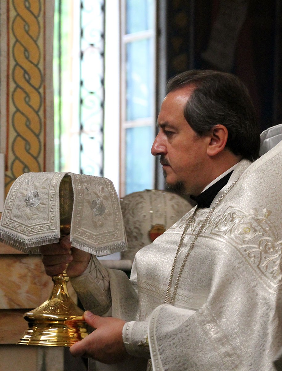 Проповедь перед причастием произнес клирик кафедрального собора Рождества Христова митр. прот. Андрей Бурлеску.
