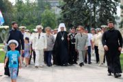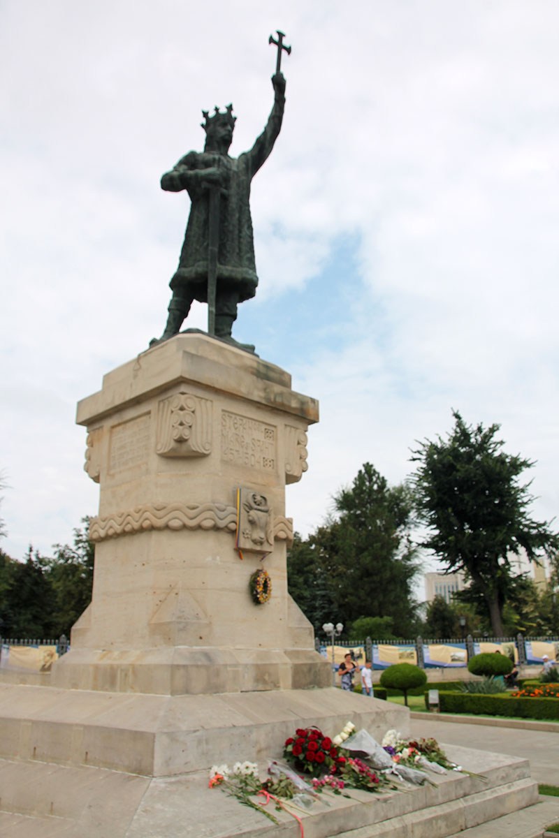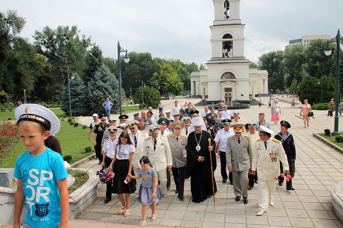 В завершении, Высокопреосвященный Митрополит вместе с более, чем 300-ми ветеранами Военно-морского флота, последовали от кафедрального собора к центральном парку, где возложили цветы у памятника святого благоверного воеводы Стефана Великого, господаря Молдавского.