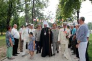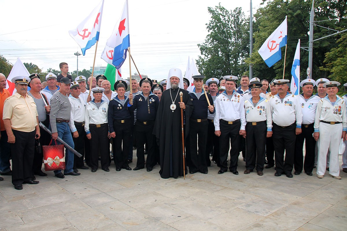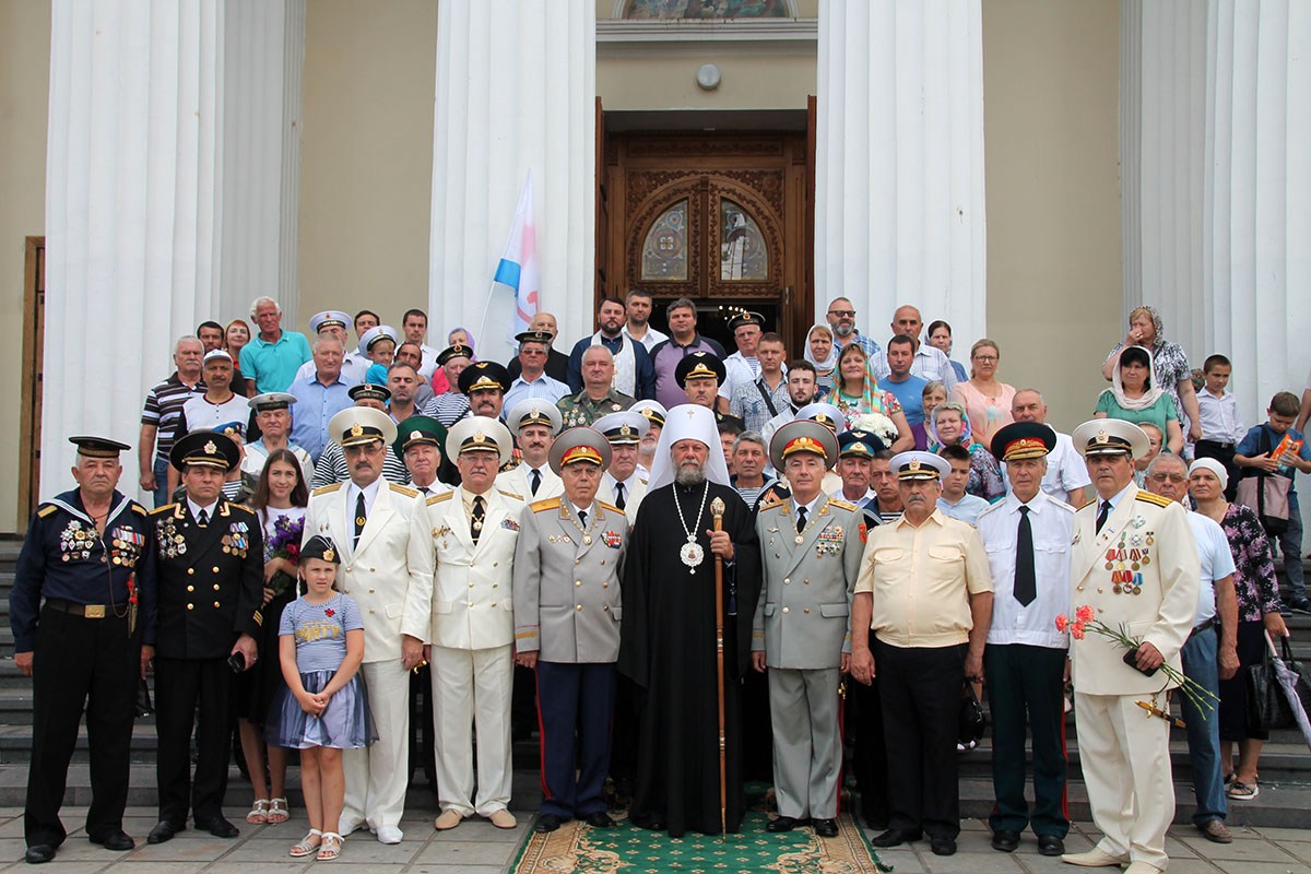 По окончании благодарственного молебна, последовавшего сразу по заамвонной молитве, Высокопреосвященный Митрополит Владимир обратился к присутствующим с архипастырским поучительным словом. Иерарх тепло поприветствовал ветеранов Военно-морского флота, после чего сфотографировался с ними на ступенях перед собором.