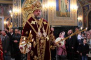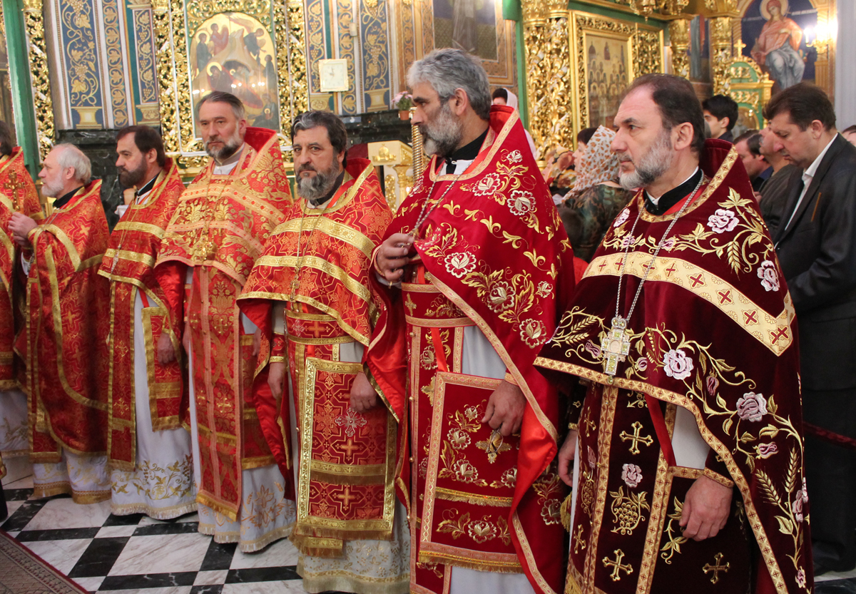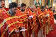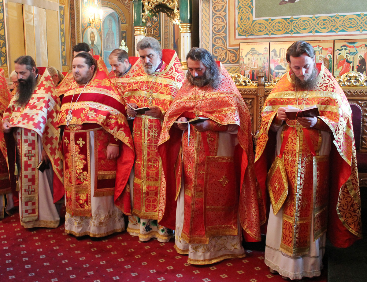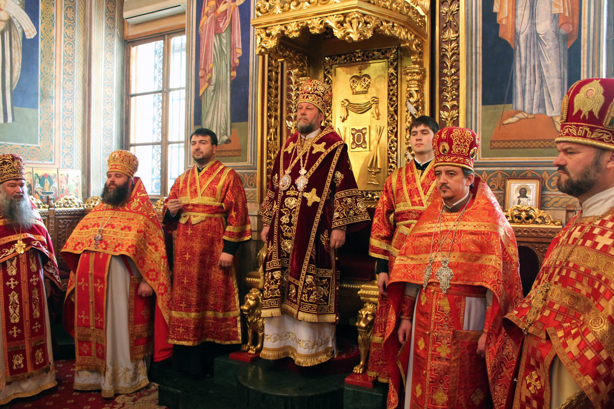 Его Высокопреосвященству сослужили: секретарь Митрополии митр. прот. Вадим Кейбаш, председатель епархиального Отдела по делам монастырей архим. Силуан (Шалару), благочинные и настоятели монастырей Кишиневской епархии и соборное духовенство.