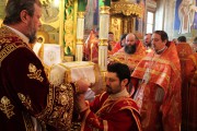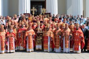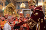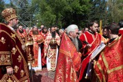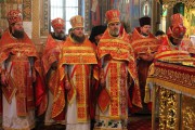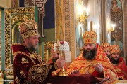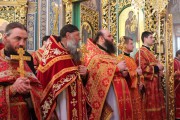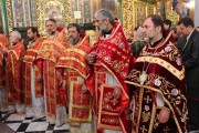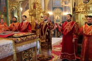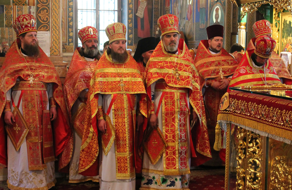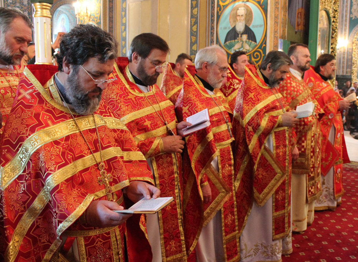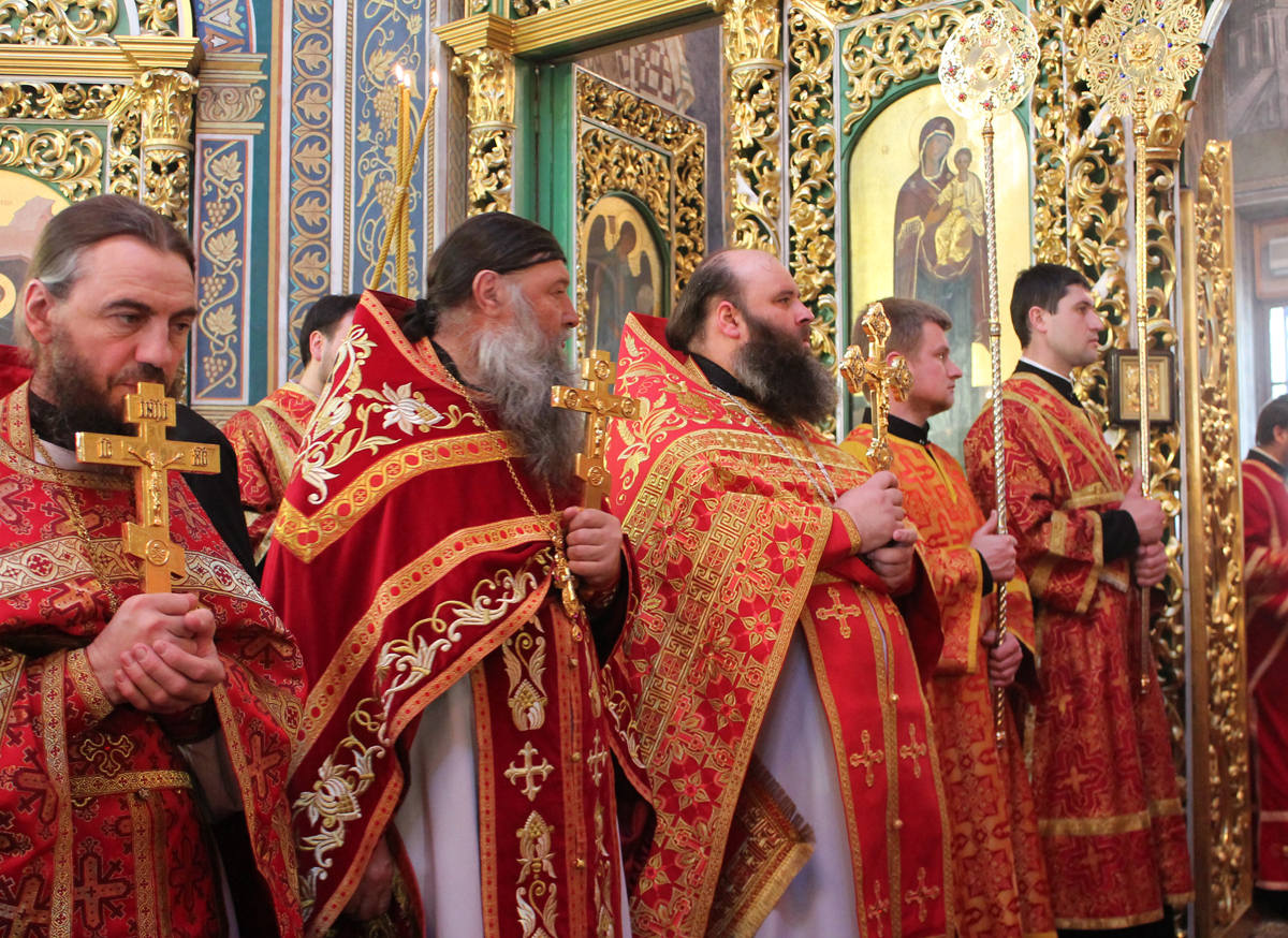Его Высокопреосвященству сослужили: секретарь Митрополии митр. прот. Вадим Кейбаш, председатель епархиального Отдела по делам монастырей архим. Силуан (Шалару), благочинные и настоятели монастырей Кишиневской епархии и соборное духовенство.