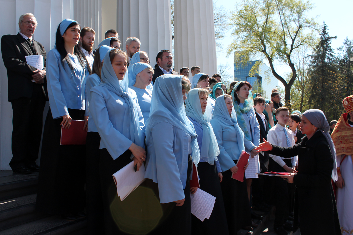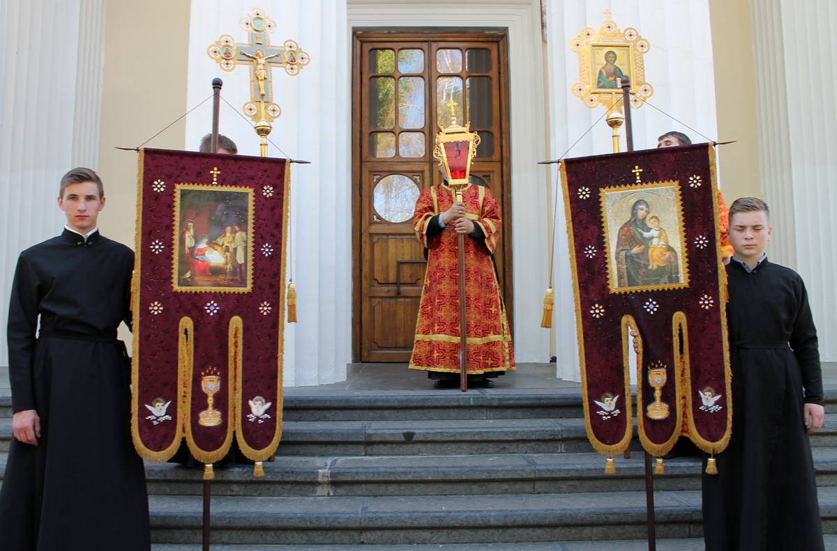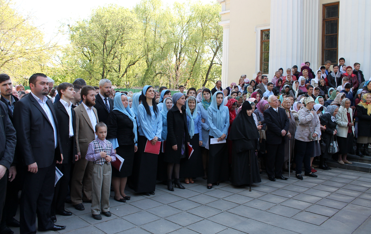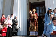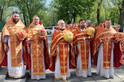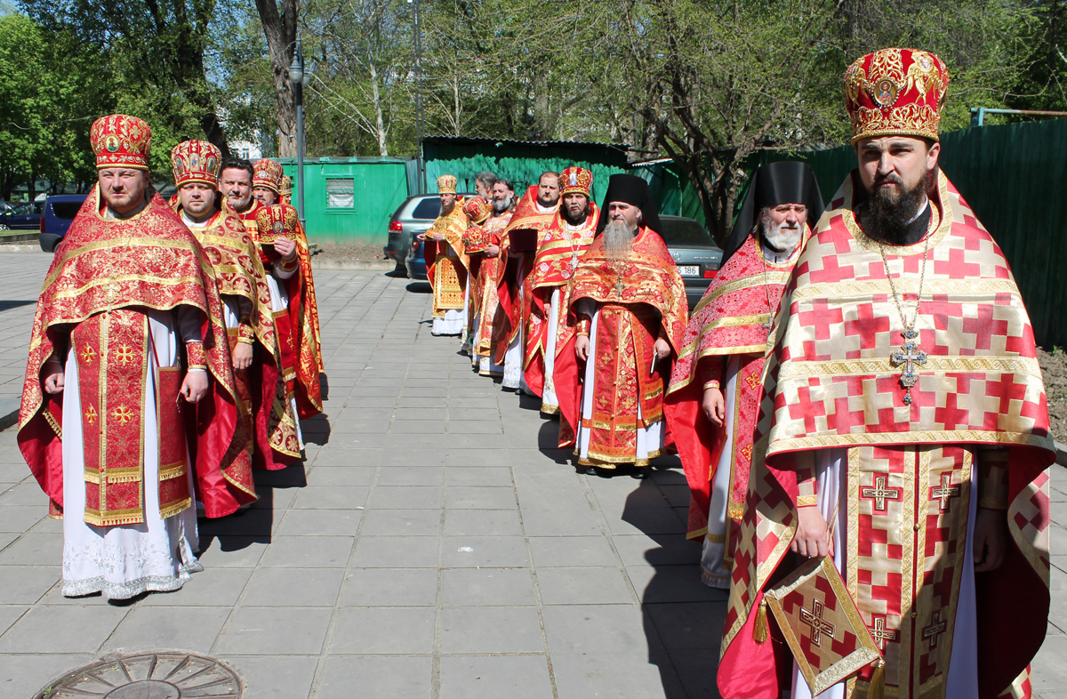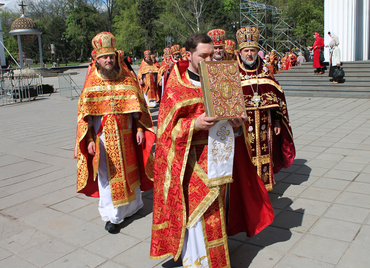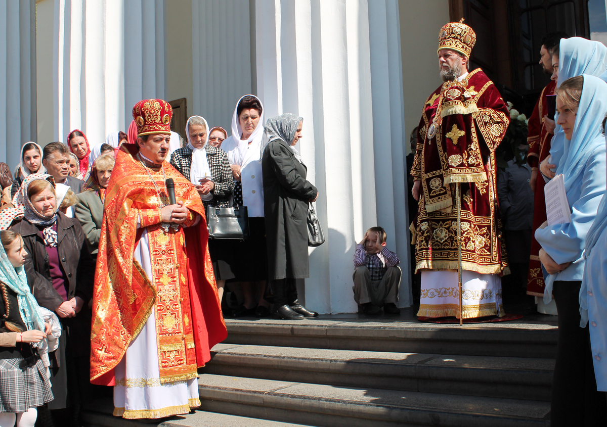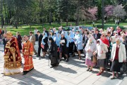 По заамвонной молитве был совершен традиционный для Светлой седмицы крестный ход с чтением евангельских зачал. Далее последовал благодарственный молебен.