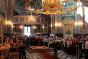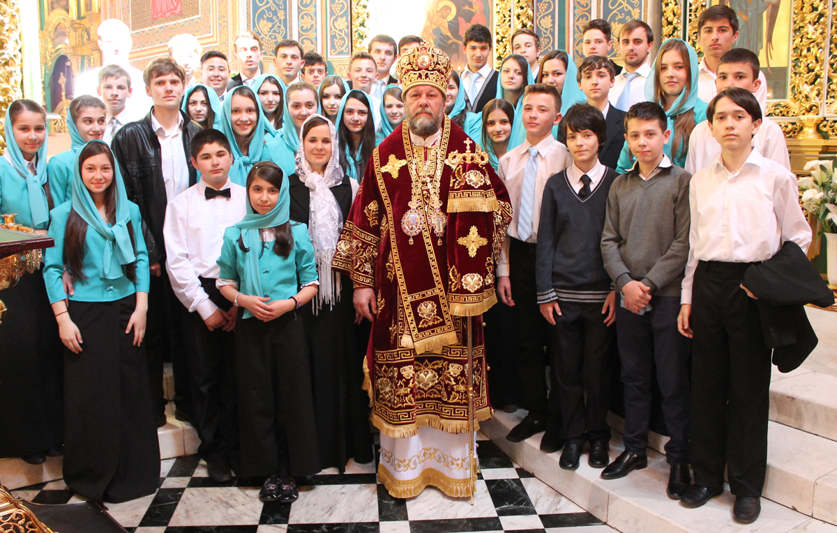 За Литургией пел большой соборный хор под управлением А. Ангени и малый соборный детский хор под управлением Ф. Бурлак.
