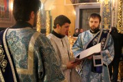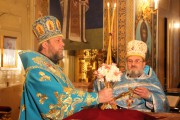 Его Высокопреосвященству сослужили: Преосвященный епископ Сорокский Иоанн, викарий Кишиневской епархии, митр. прот. Вадим Кейбаш, секретарь Кишиневско-Молдавской Митрополии, иеромонах Хризостом (Панас), настоятель Свято-Вознесенского храма г. Кишинева, прот. Юрий Плэмэдялэ, настоятель Покровского храма г. Яловены, соборное духовенство.
