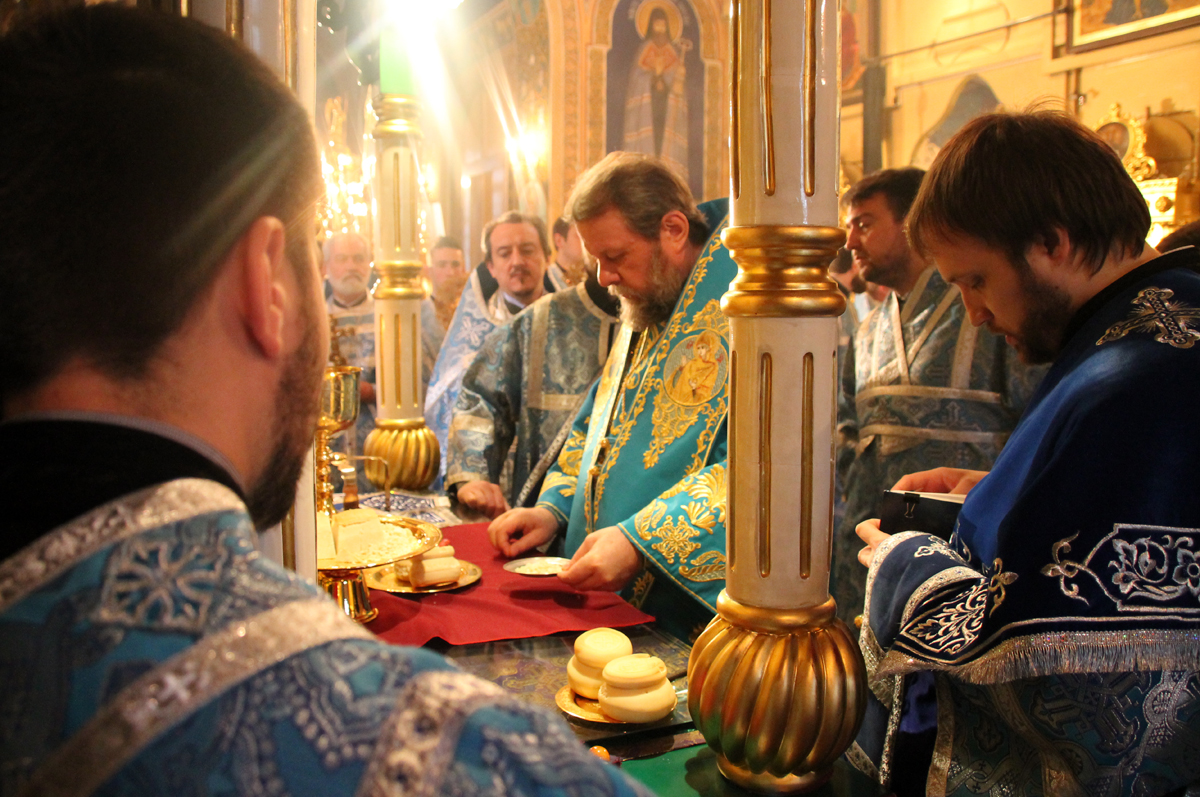 Проповедь перед причастием произнес митр. прот. Федор Тихон, соборный клирик.