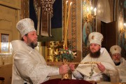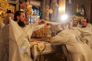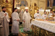 Его Высокопреосвященству сослужили: секретарь Митрополии митрофорный протоиерей Вадим Кейбаш, архимандрит Иоанн (Мошнегуцу), избранный и нареченный во епископа Сорокского, викария Кишиневской епархии, а также соборное духовенство.