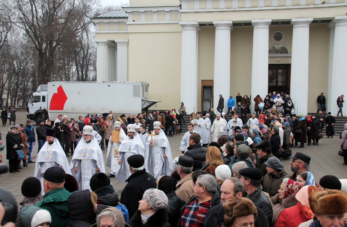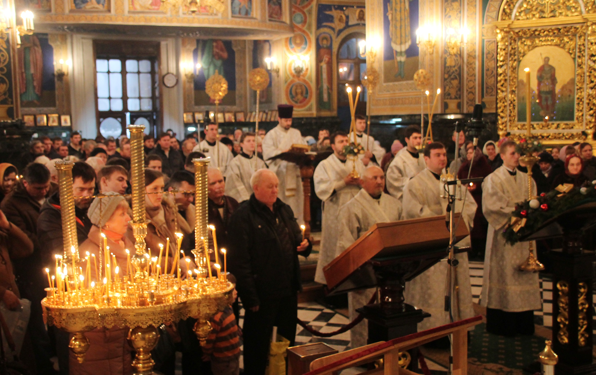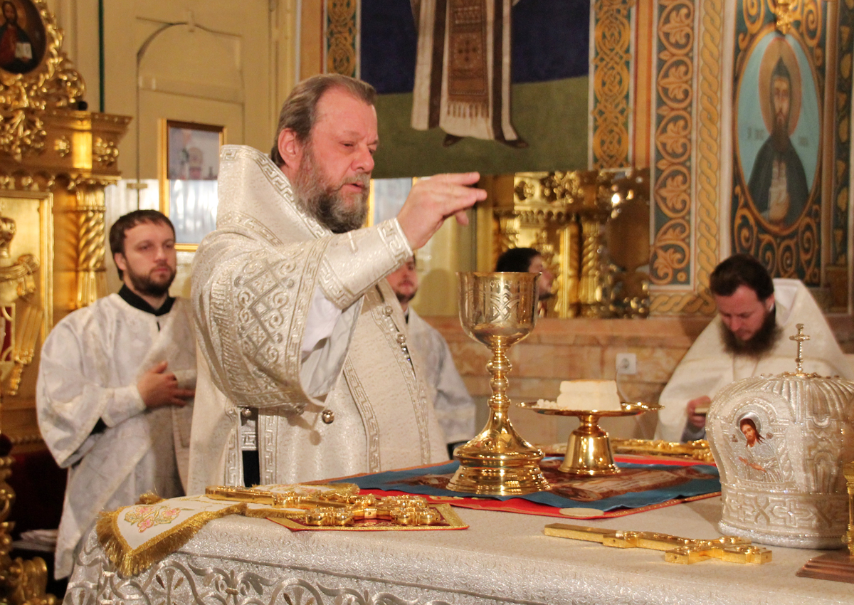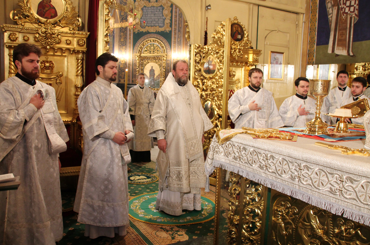 Проповедь перед причастием произнес митрофорный протоиерей Вадим Кейбаш, ключарь кафедрального собора Рождества Христова.