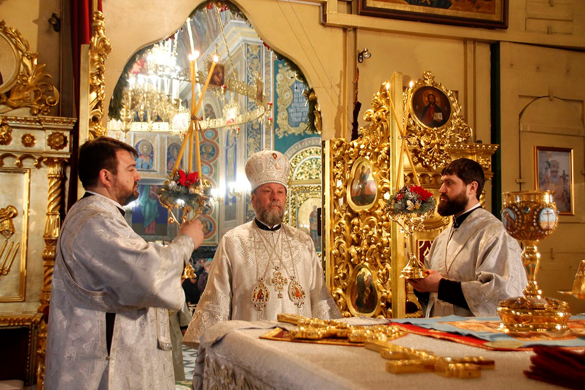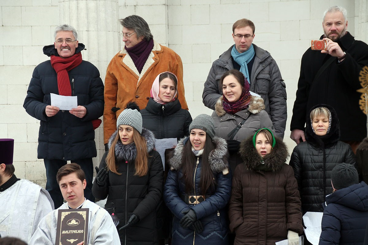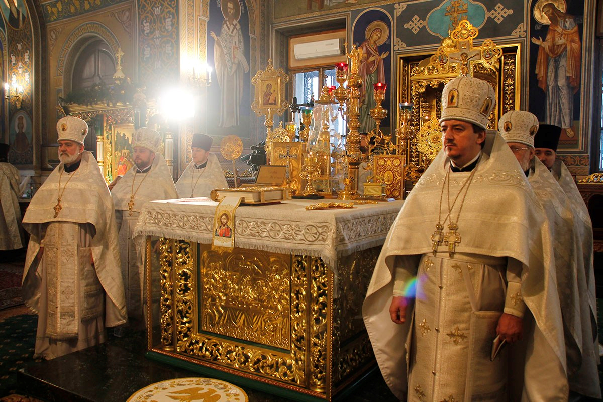 Богослужебные песнопения исполнял большой соборный хор под управлением регента Ангелины Павлюченко.