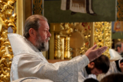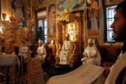 Его Высокопреосвященству сослужили: митр. прот. Вадим Кейбаш, секретарь Кишиневско-Молдавской митрополии, соборное духовенство.