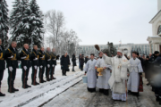 По установившейся доброй традицией при освящении воды военнослужащие специального караула Национальной Армии совершили три залпа из ружей.