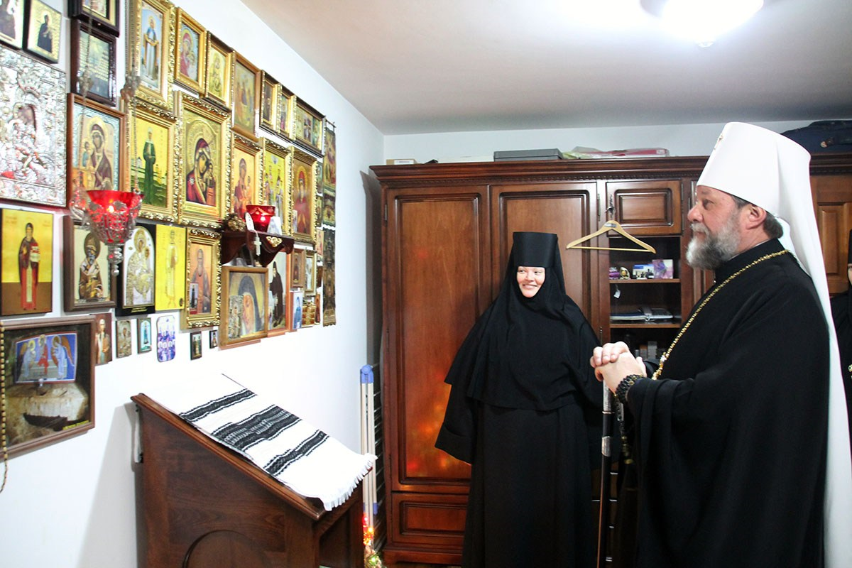 В продолжение своего архипастырского визита в Марфо-Мариинскую обитель, Его Высокопреосвященство посетил новопостроенный блок келий для насельниц монастыря, в котором помимо келий также находится домовой храм, внушительная библиотека, конференц-зал и несколько келий для паломников. Настоятельница монастыря игуменья Марфа (Кушнир) ознакомила Владыку Митрополита с проектом благоустройства обители, разбитого на несколько этапов.
