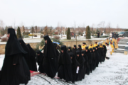 Богослужебные песнопения исполнял хор монахинь Марфо-Мариинского женского монастыря.