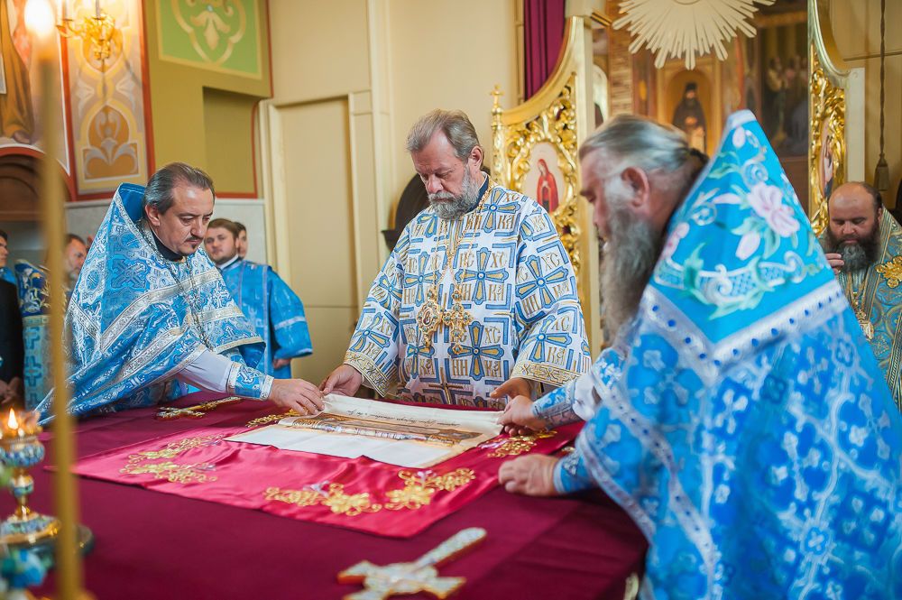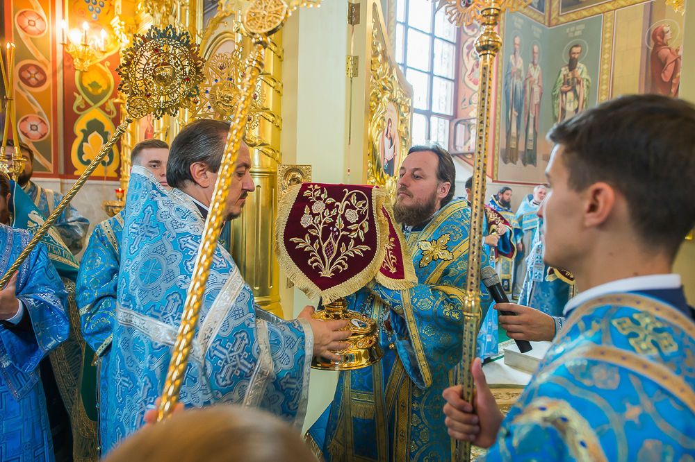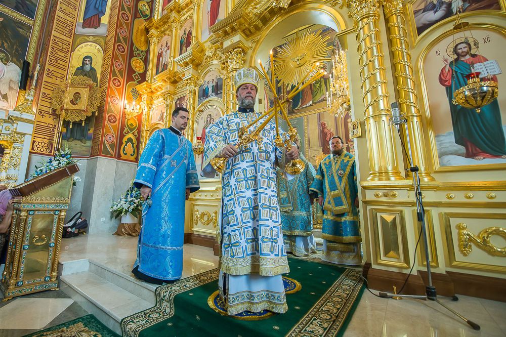 Далее, Высокопреосвященный Митрополит Владимир обратился к пастве с архипастырским словом, поздравив братию обители и верующих с славным праздником Рождества Пресвятой Богородицы.