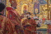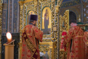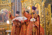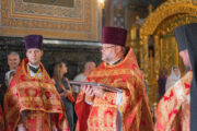 Его Высокопреосвященству сослужили: секретарь Молдавской митрополии митрофорный протоиерей Вадим Кейбаш, соборное духовенство.
