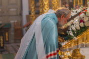 Богослужебные песнопения исполнил большой соборный хор под управлением регента Ангелины Ангени.