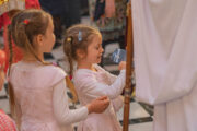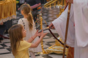 Затем, по сложившейся доброй традиции каждый ребенок, присутствующий за богослужением получил из рук Высокопреосвященного Митрополита Владимира по небольшому пасхальному дару.