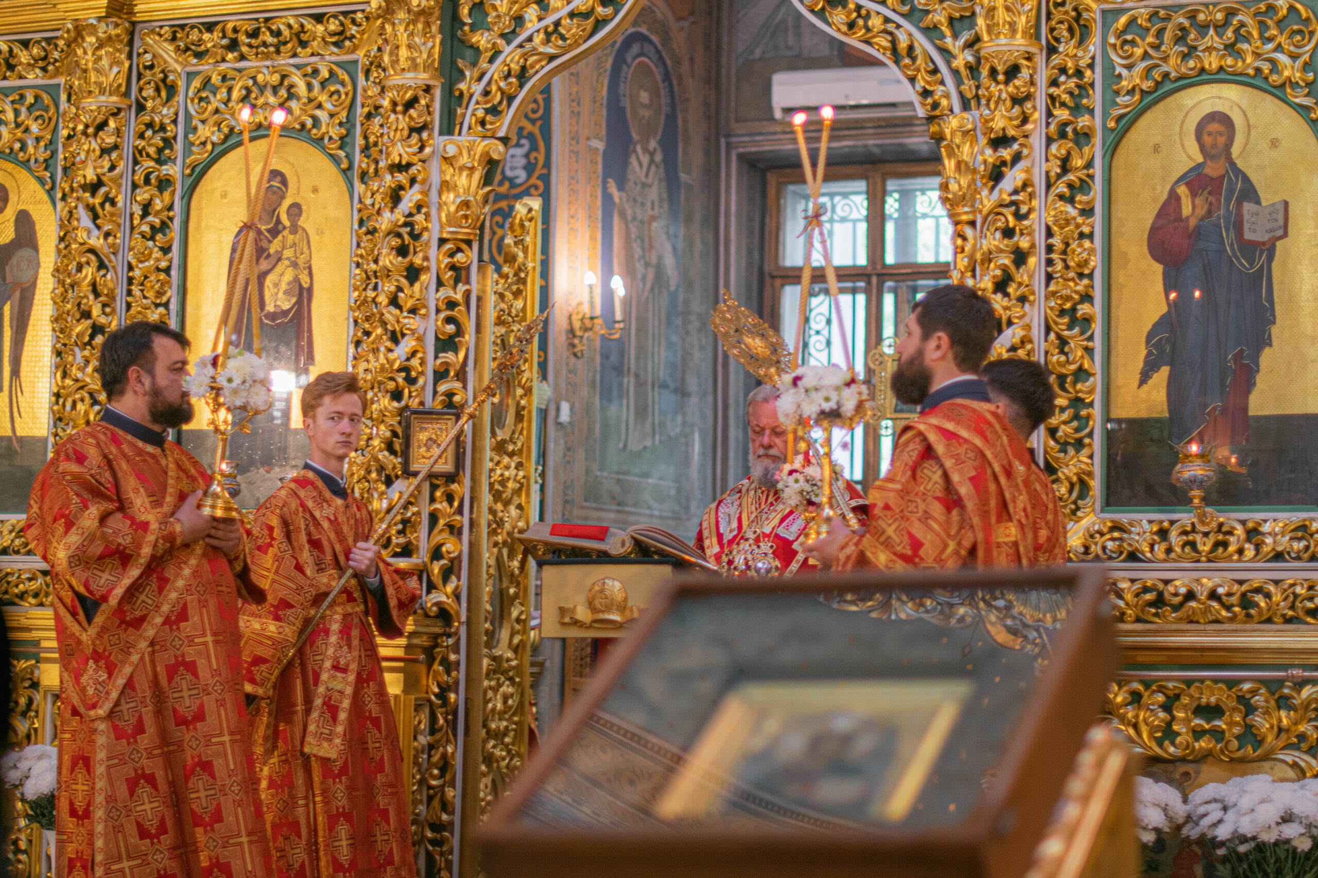 Его Высокопреосвященству сослужили: секретарь Молдавской митрополии митрофорный протоиерей Вадим Кейбаш, соборное духовенство.