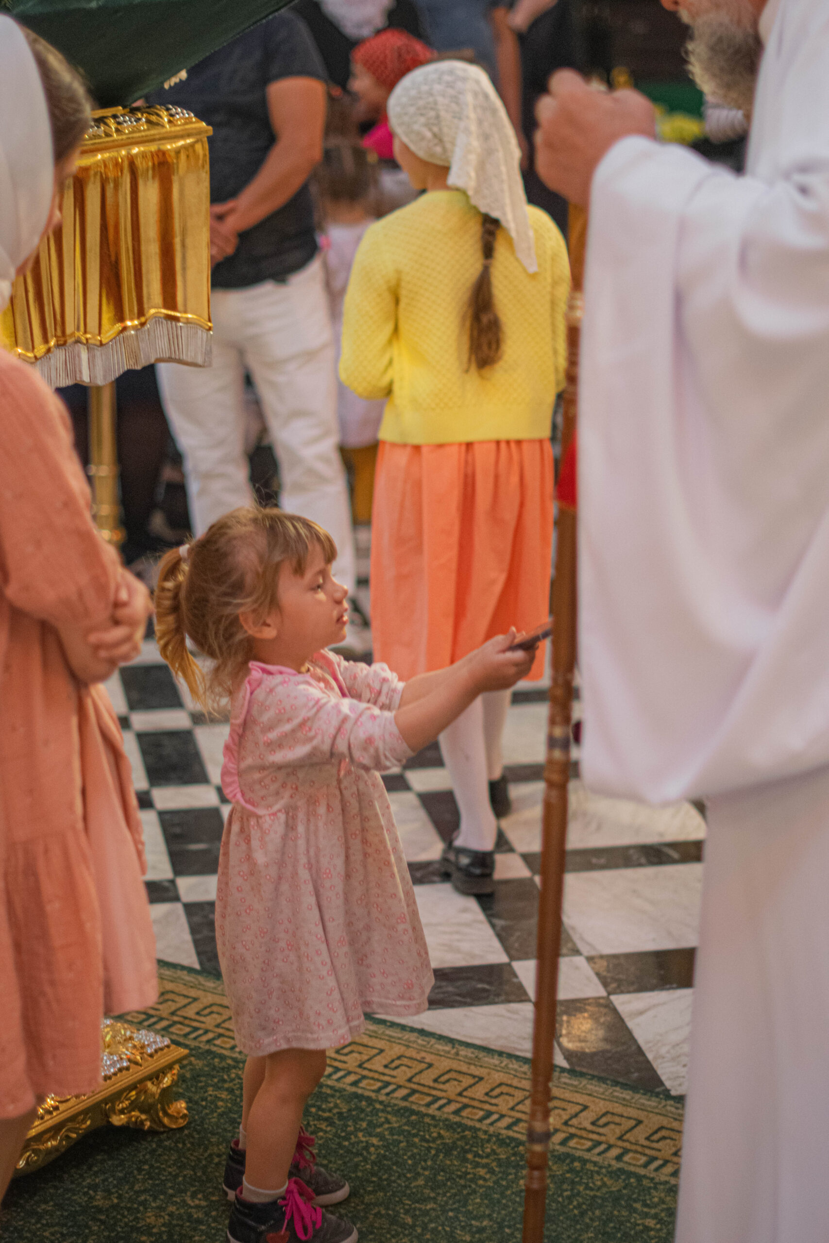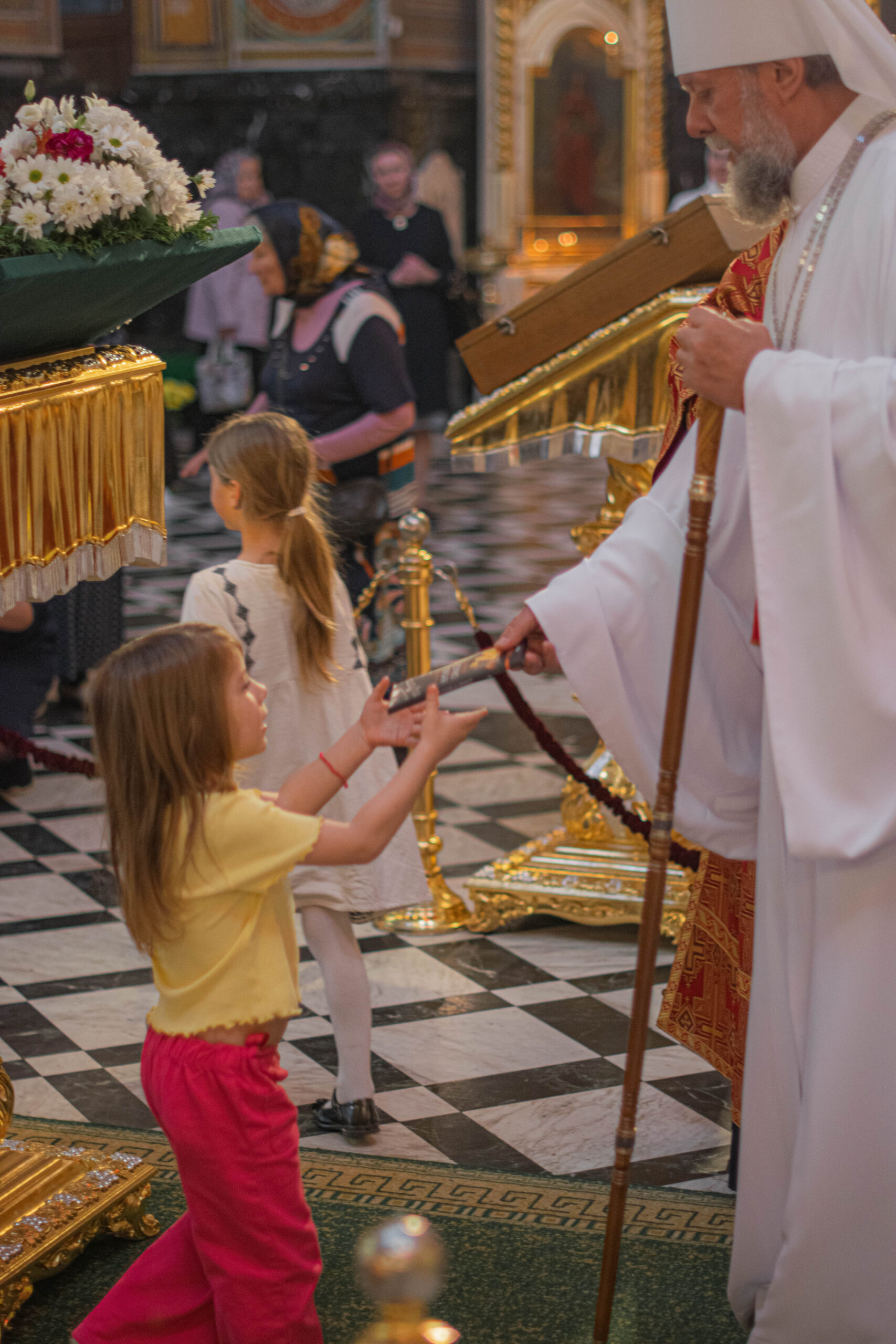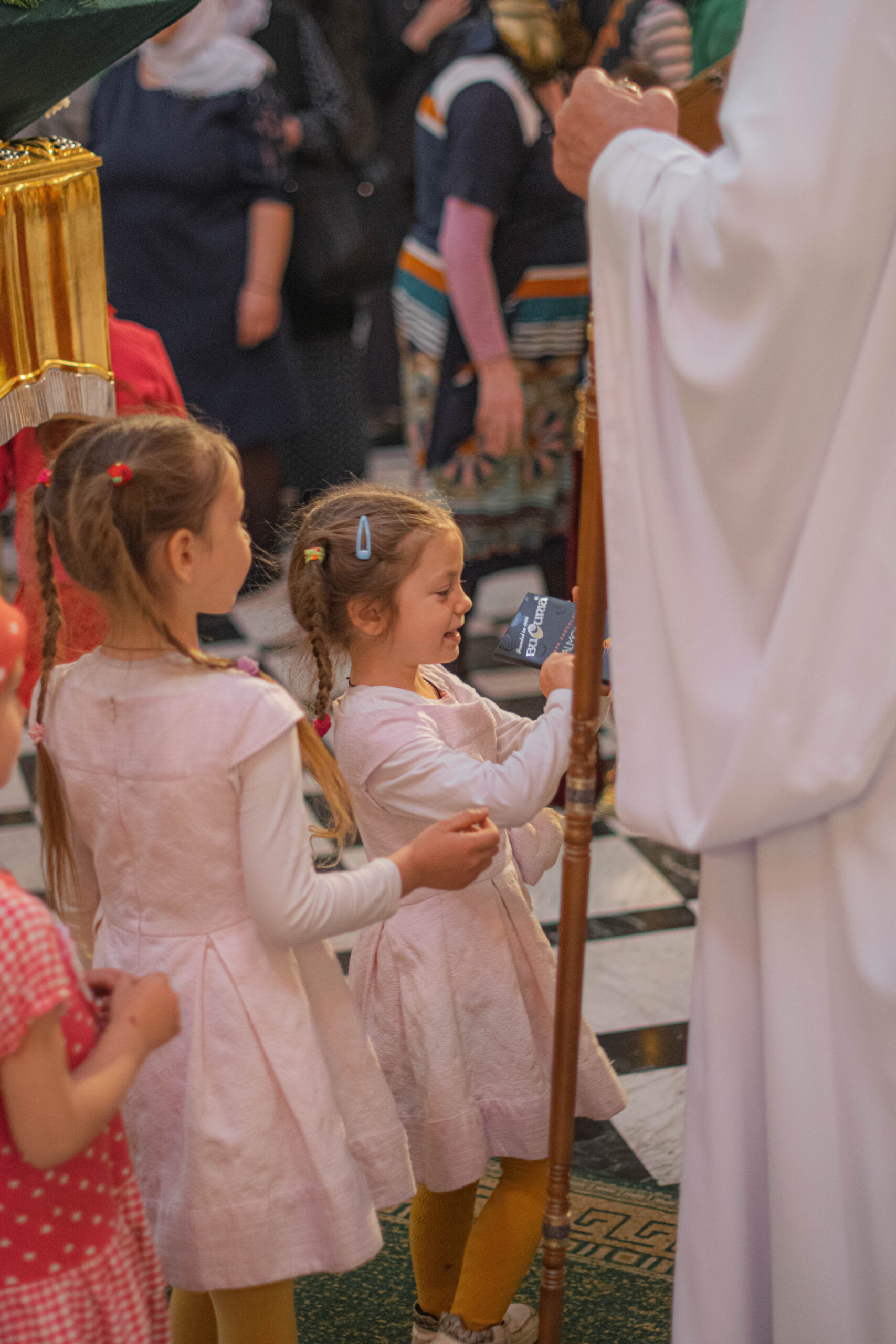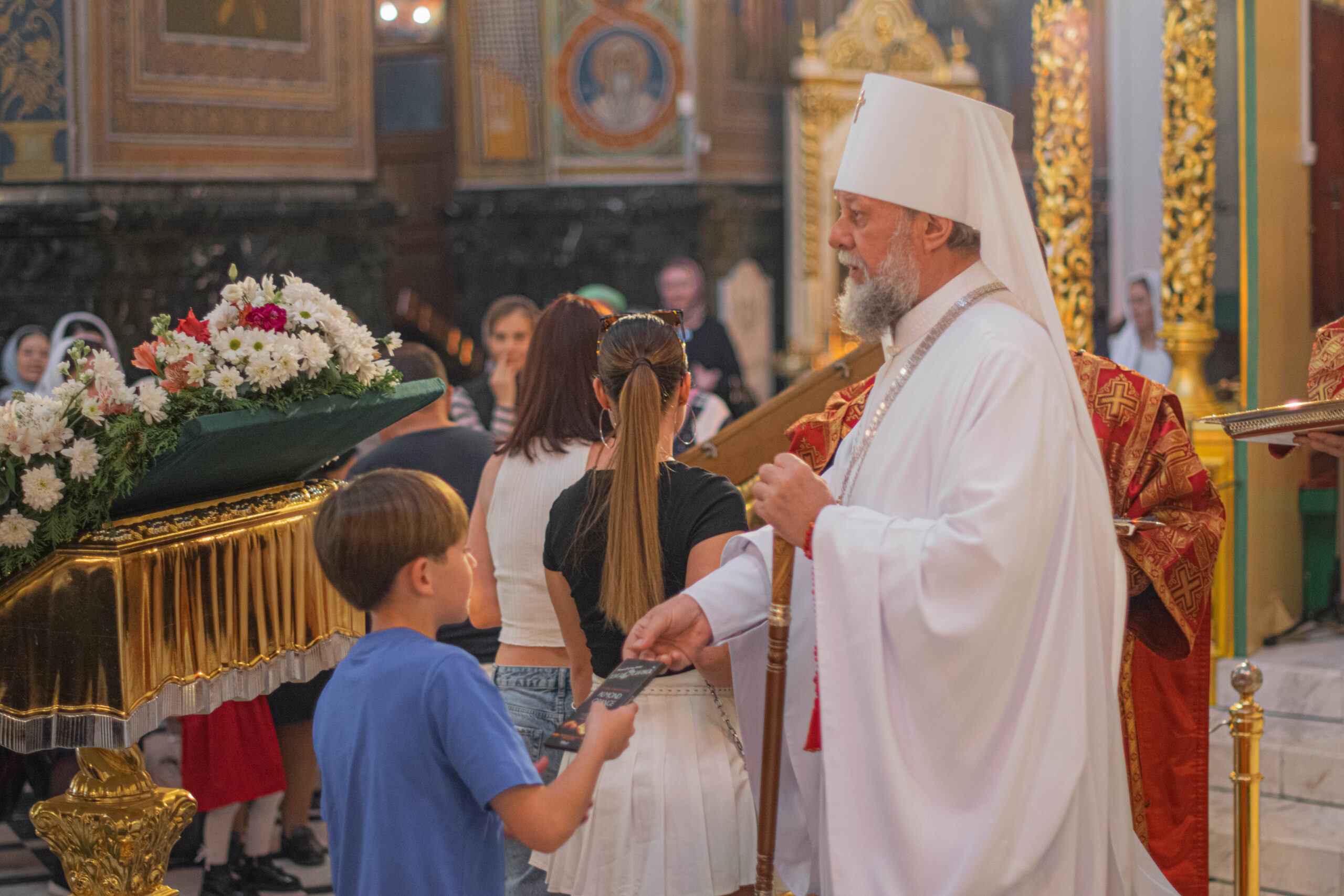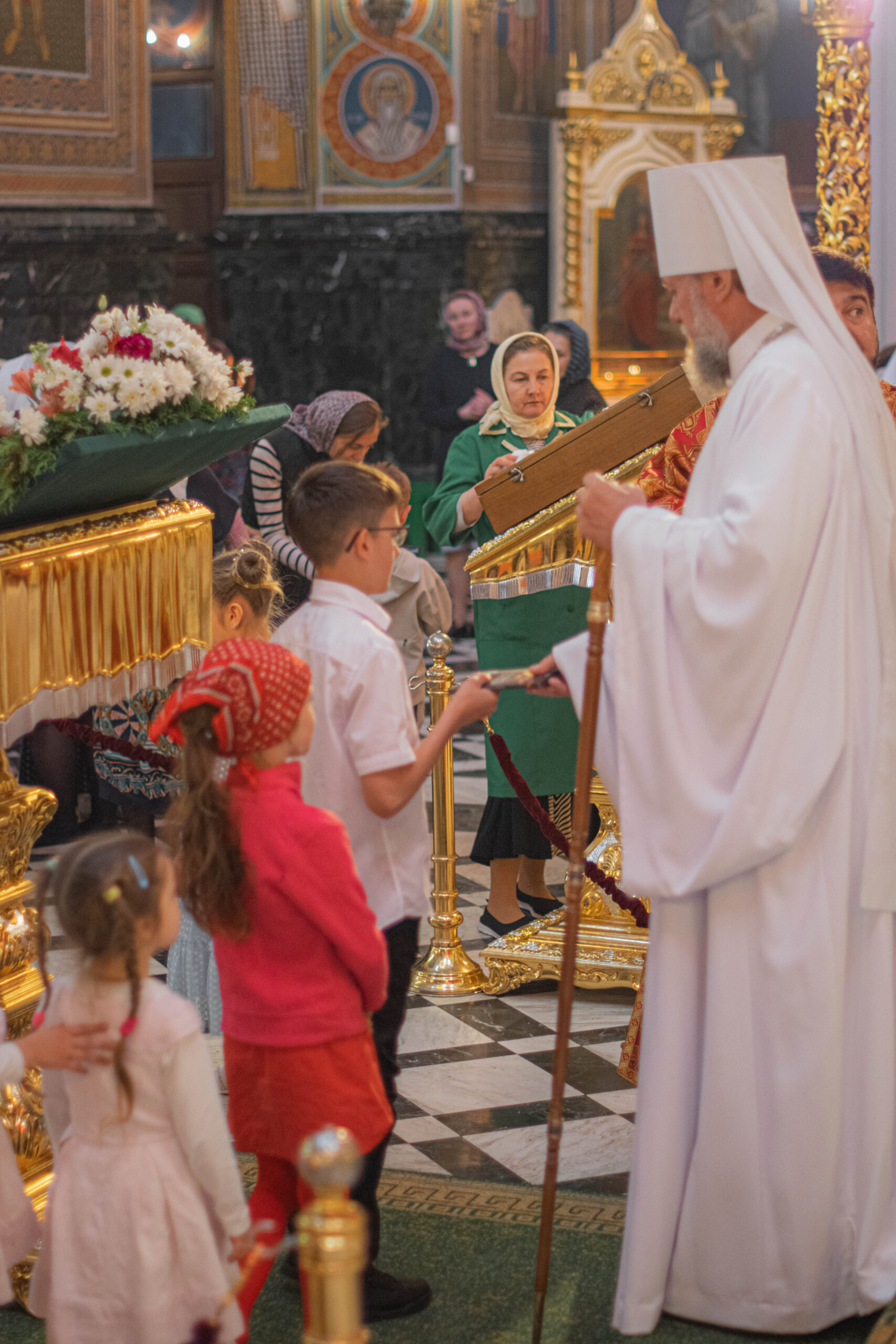 Затем, по сложившейся доброй традиции каждый ребенок, присутствующий за богослужением получил из рук Высокопреосвященного Митрополита Владимира по небольшому пасхальному дару.