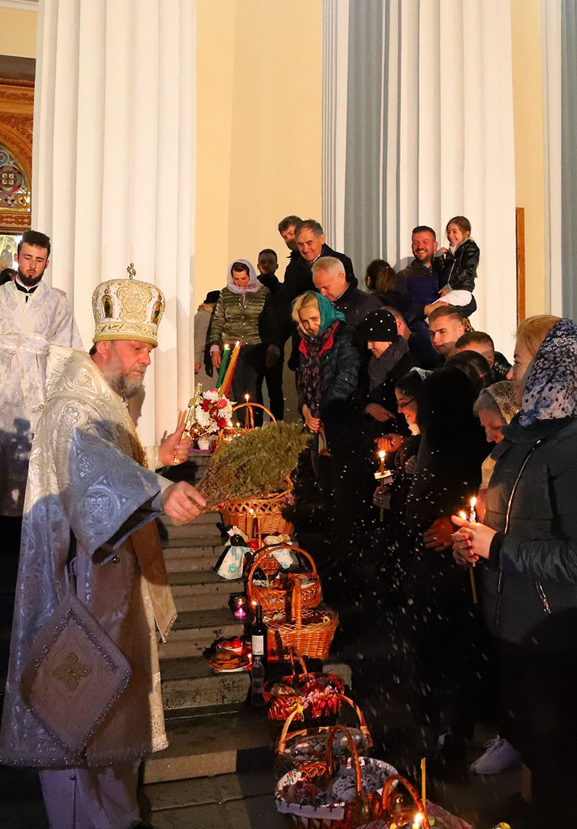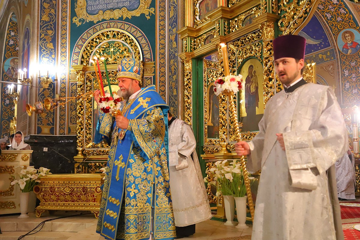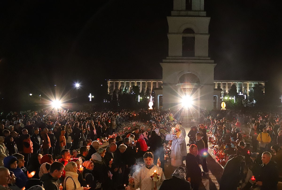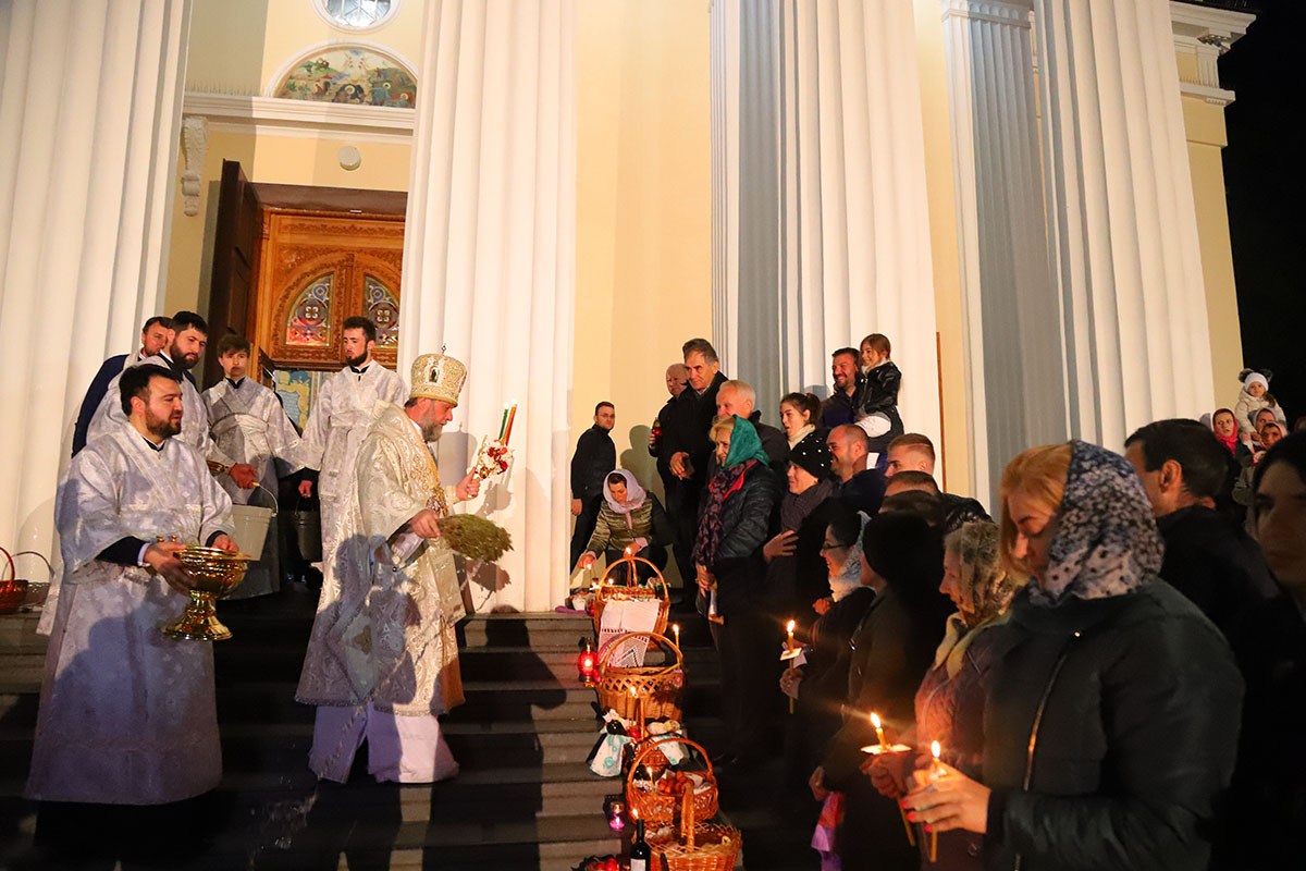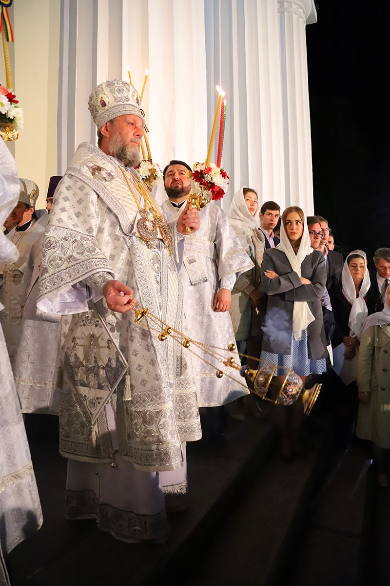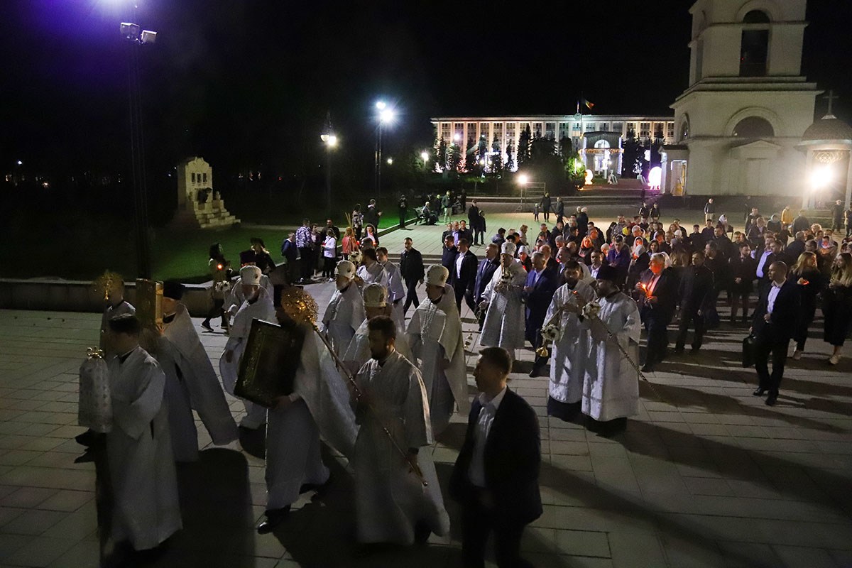 В ночь с 27 на 28 апреля 2019 года в кафедральном соборе Рождества Христова Высокопреосвященный Митрополит Кишиневский и всея Молдовы Владимир совершил Пасхальные богослужения – полунощницу, крестный ход, Пасхальную заутреню и Божественную литургию свт. Иоанна Златоуста.