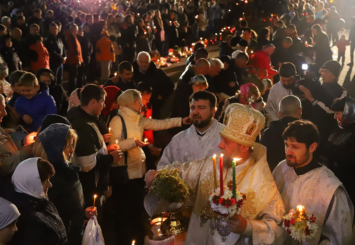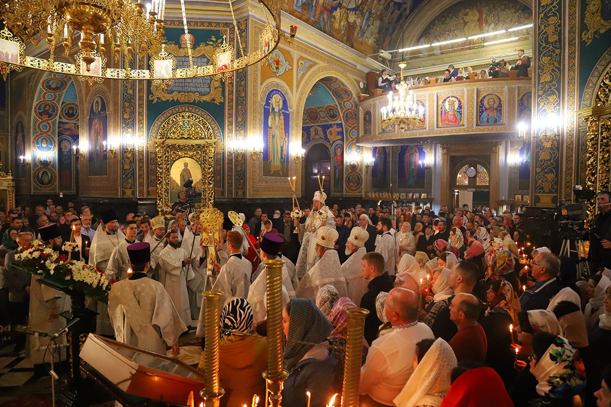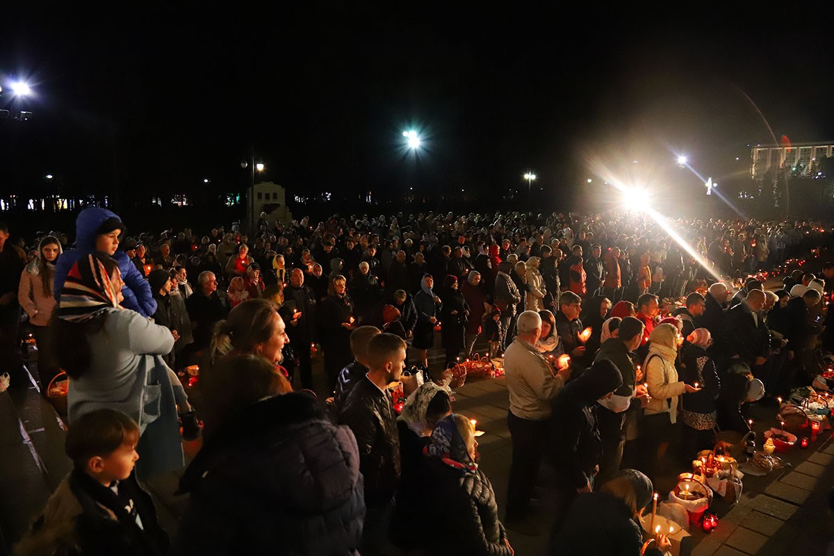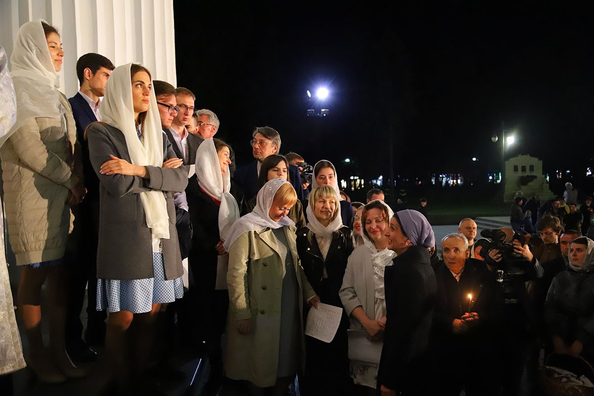 Под пение стихиры «Воскресение Твое, Христе Спасе» был совершен крестный ход вокруг собора Рождества Христова.