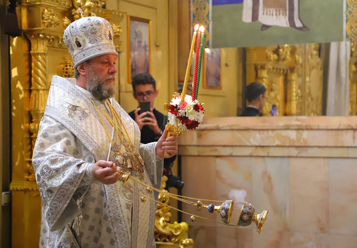 Пасхальное Евангелие (Ин. 1:1-17) читалось на 6 языках. Высокопреосвященный Митрополит Владимир начал чтение Евангелия на латинском языке, далее сослужащее духовенство продолжило чтение на церковно-славянском, французском, немецком, английском и государственном языке.