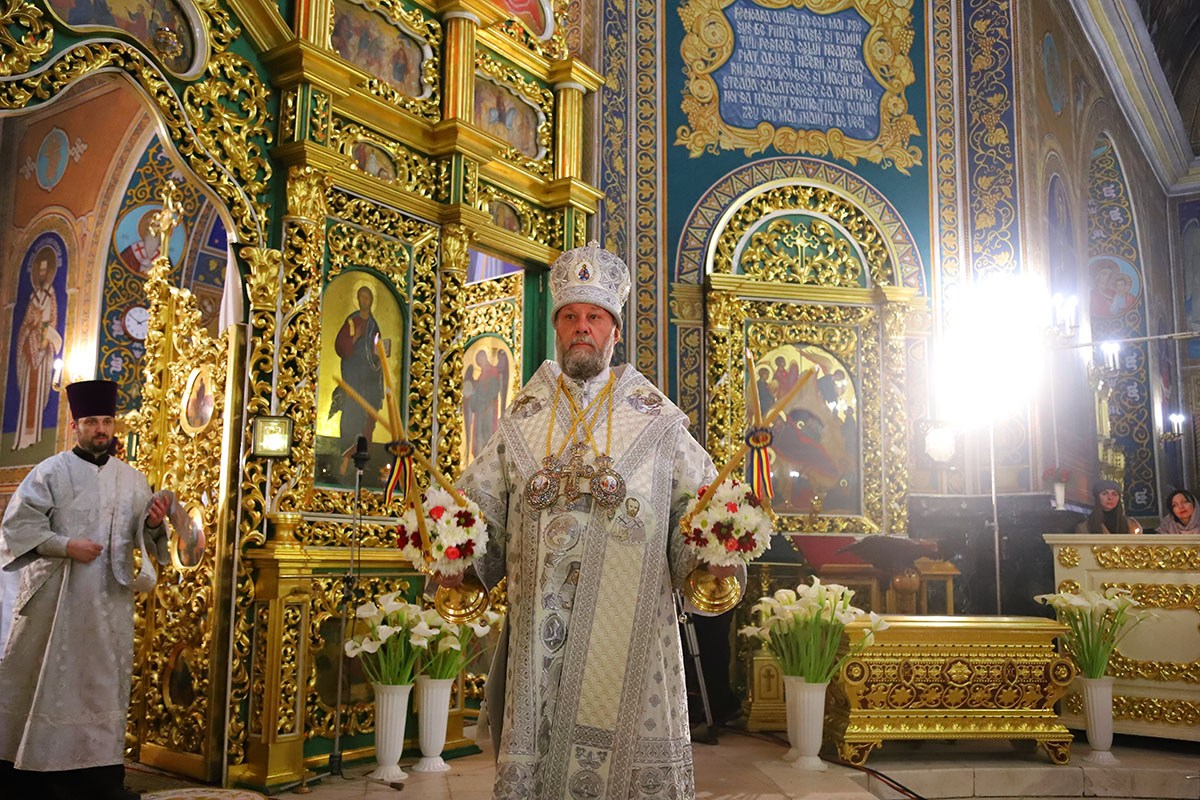 Его Высокопреосвященству сослужили: секретарь Кишиневско-Молдавской митрополии митр. прот. Вадим Кейбаш, соборное духовенство.