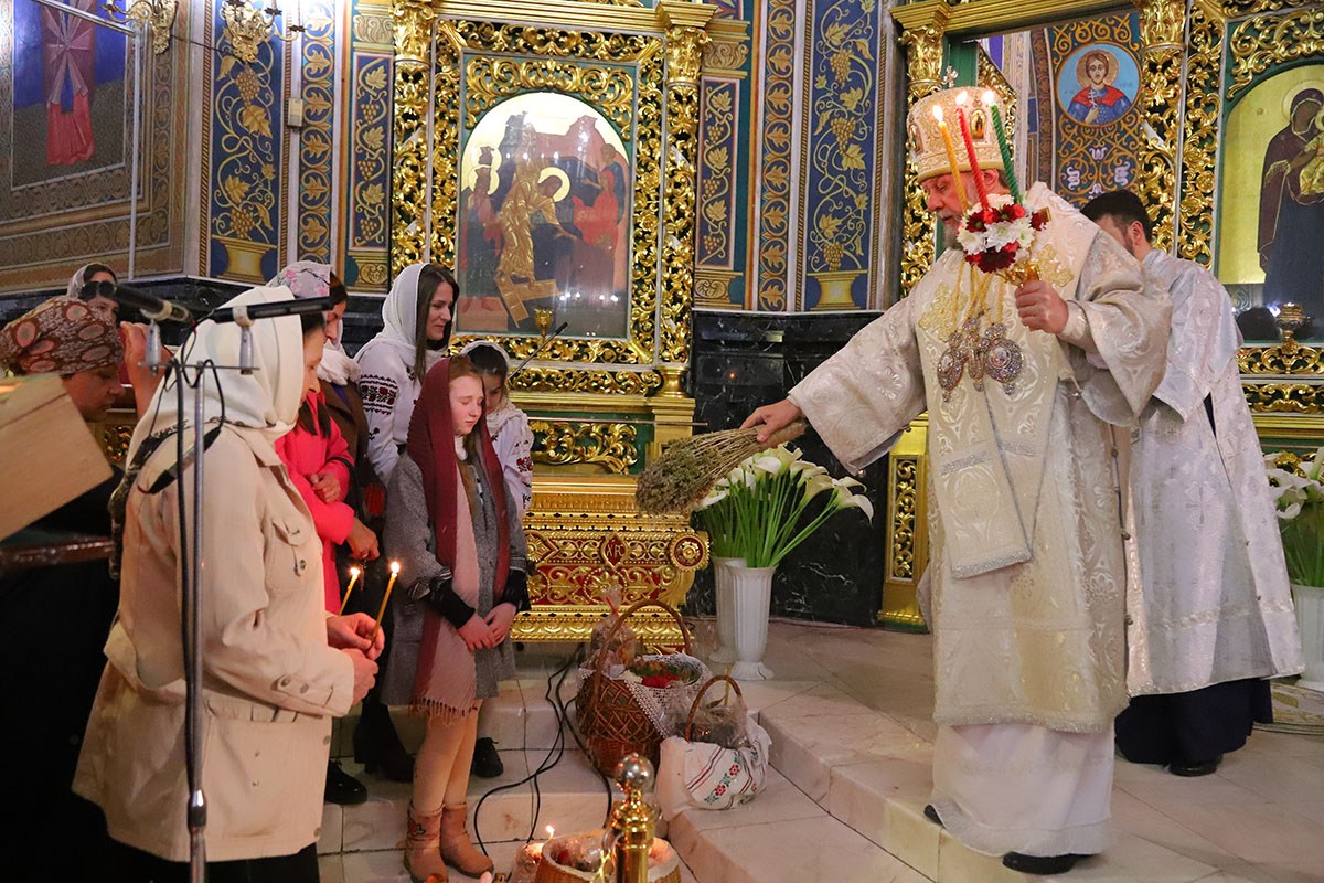 По заамвонной молитве, глава Православной Церкви Молдовы освятил артос, после чего были освящены дары верующих.
