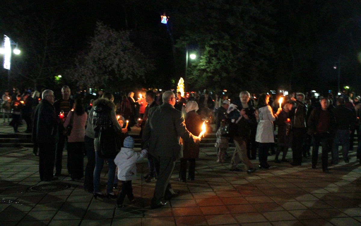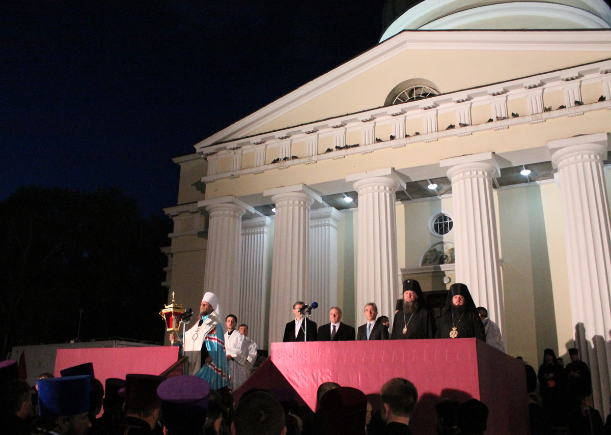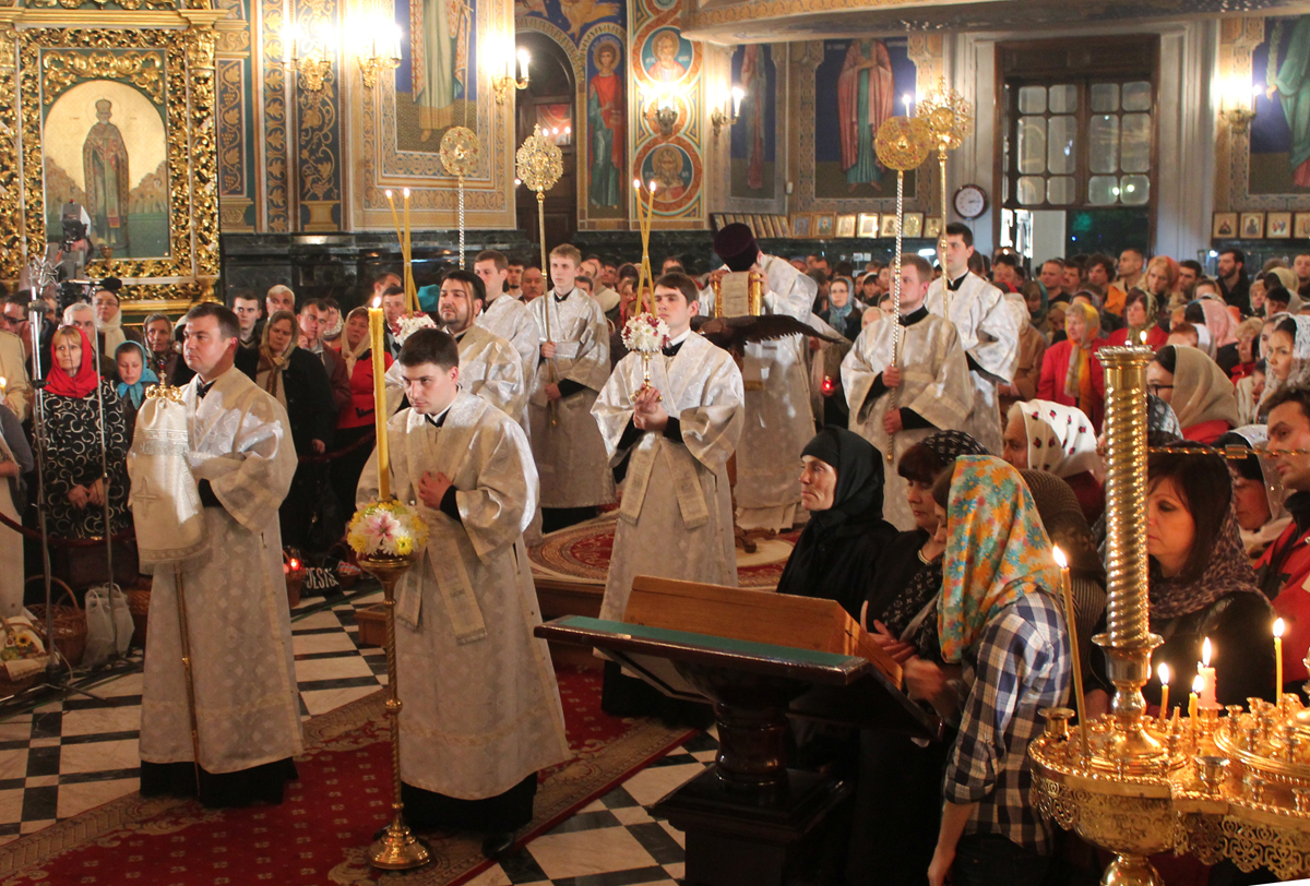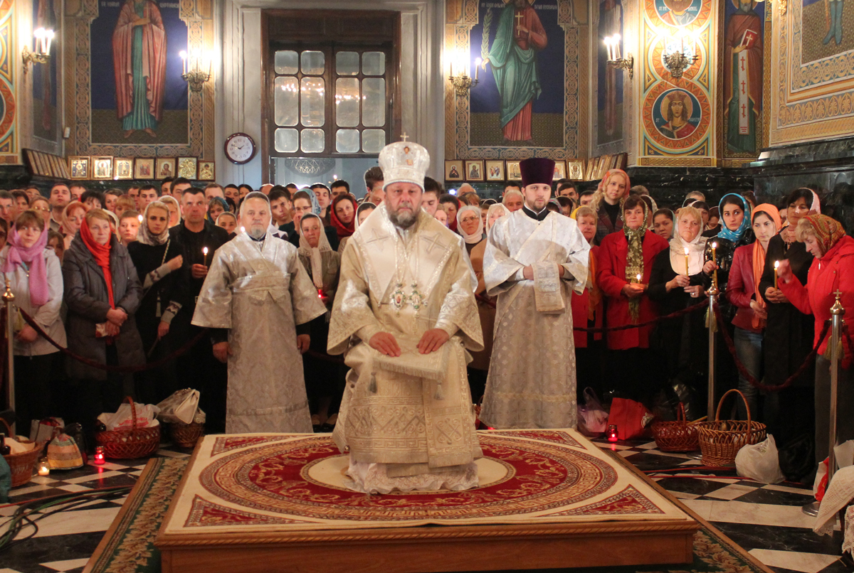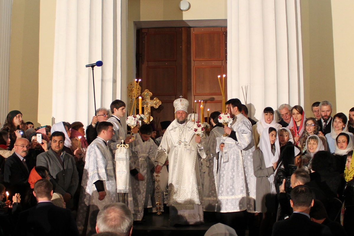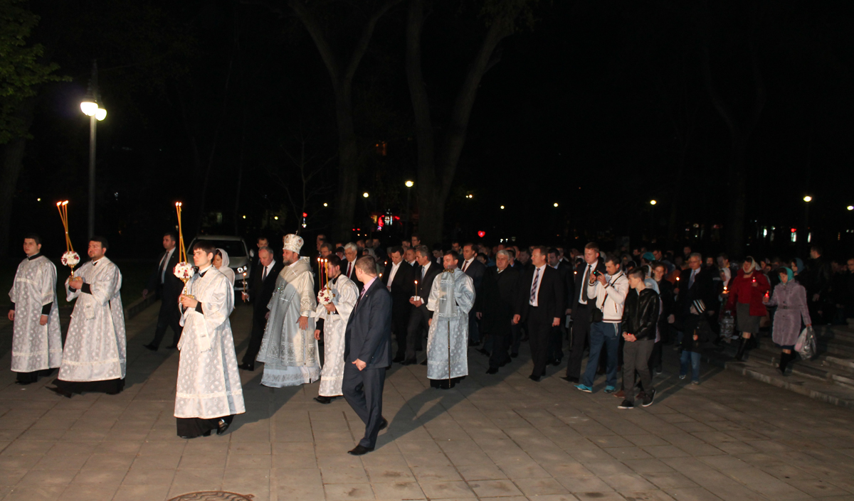 Под пение Пасхальной стихиры «Воскресение Твое, Христе Спасе» вокруг кафедрального собора Рождества Христова был совершен крестный ход.