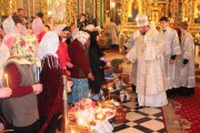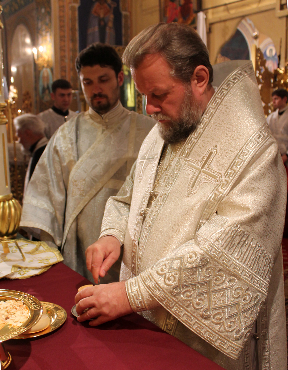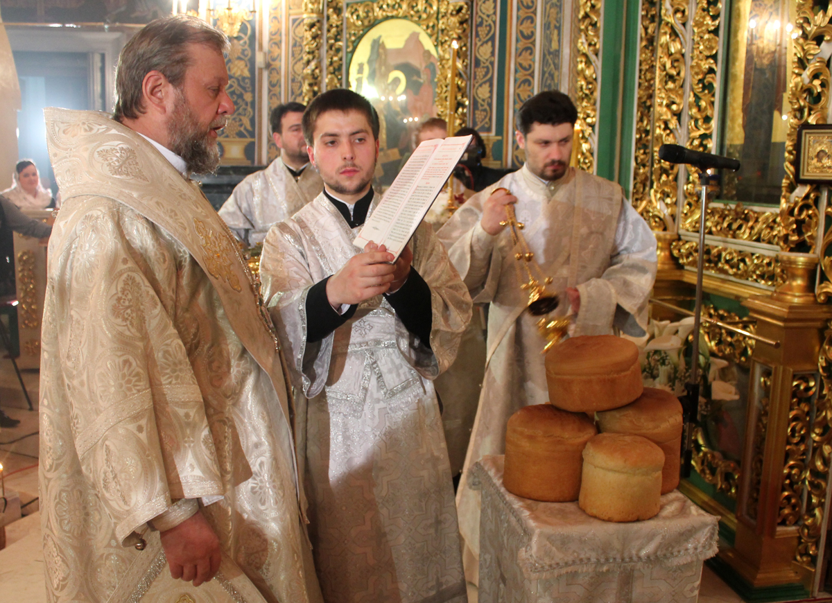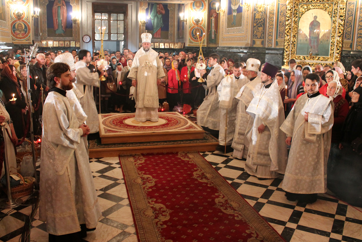 После заамвонной молитвы Высокопреосвященный Митрополит Владимир освятил артос и прочитал молитву на благословение мясных брашен и сыра и яиц.
