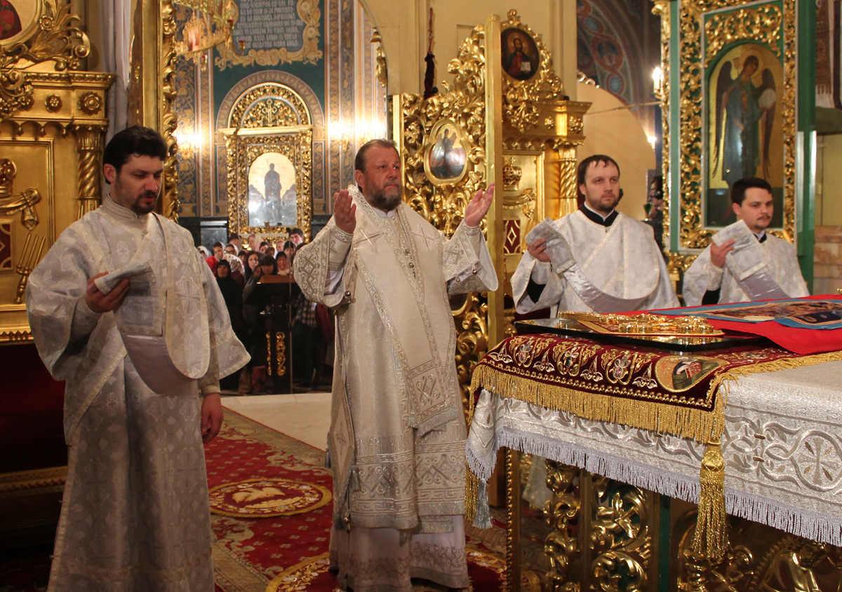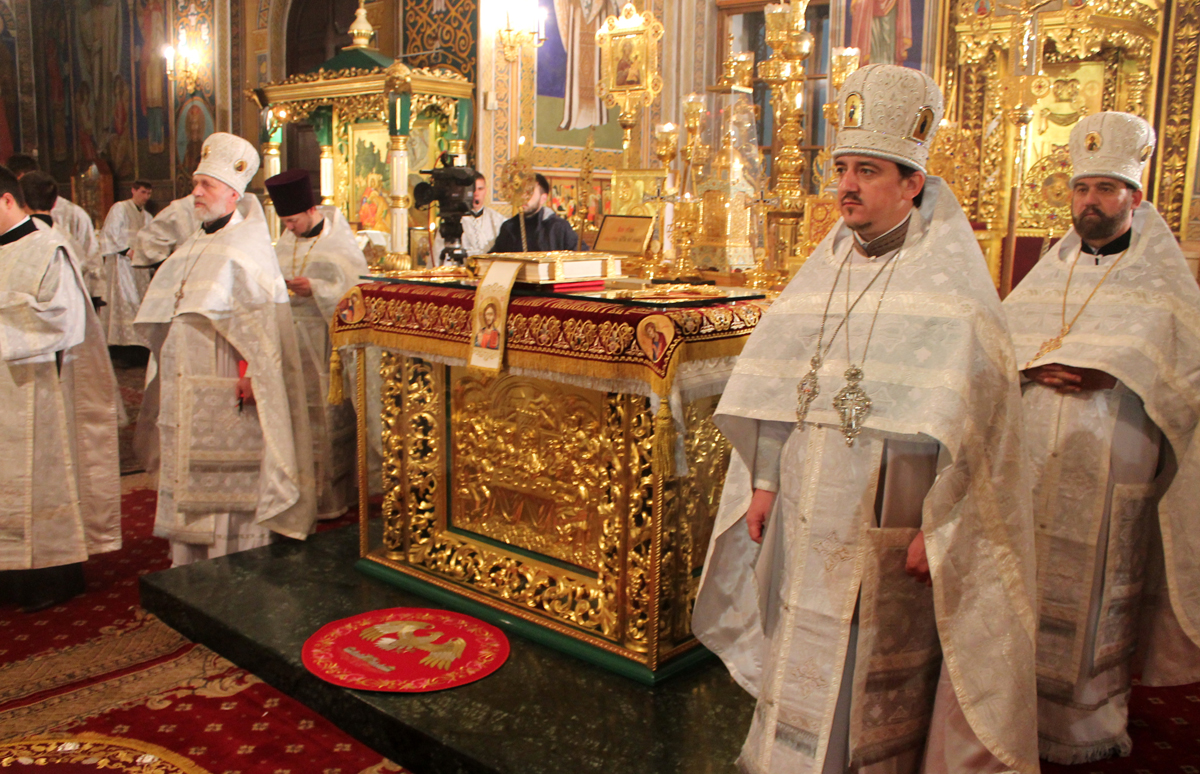 Сослужили Его Высокопреосвященству секретарь Митрополии митрофорный протоиерей Вадим Кейбаш и соборное духовенство.