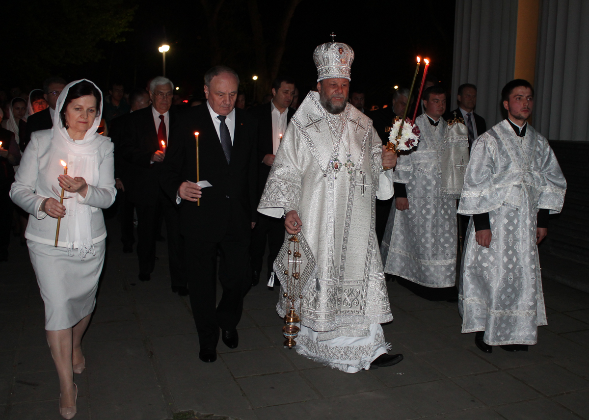 Пасхальное богослужение в кафедральном соборе Рождества Христова посетили Президент Республики Молдова Н. Тимофти с супругой, премьер-министр Респлублики Молдова Юрий Лянкэ, председатель ЛДПМ Владимир Филат и другие официальные лица.