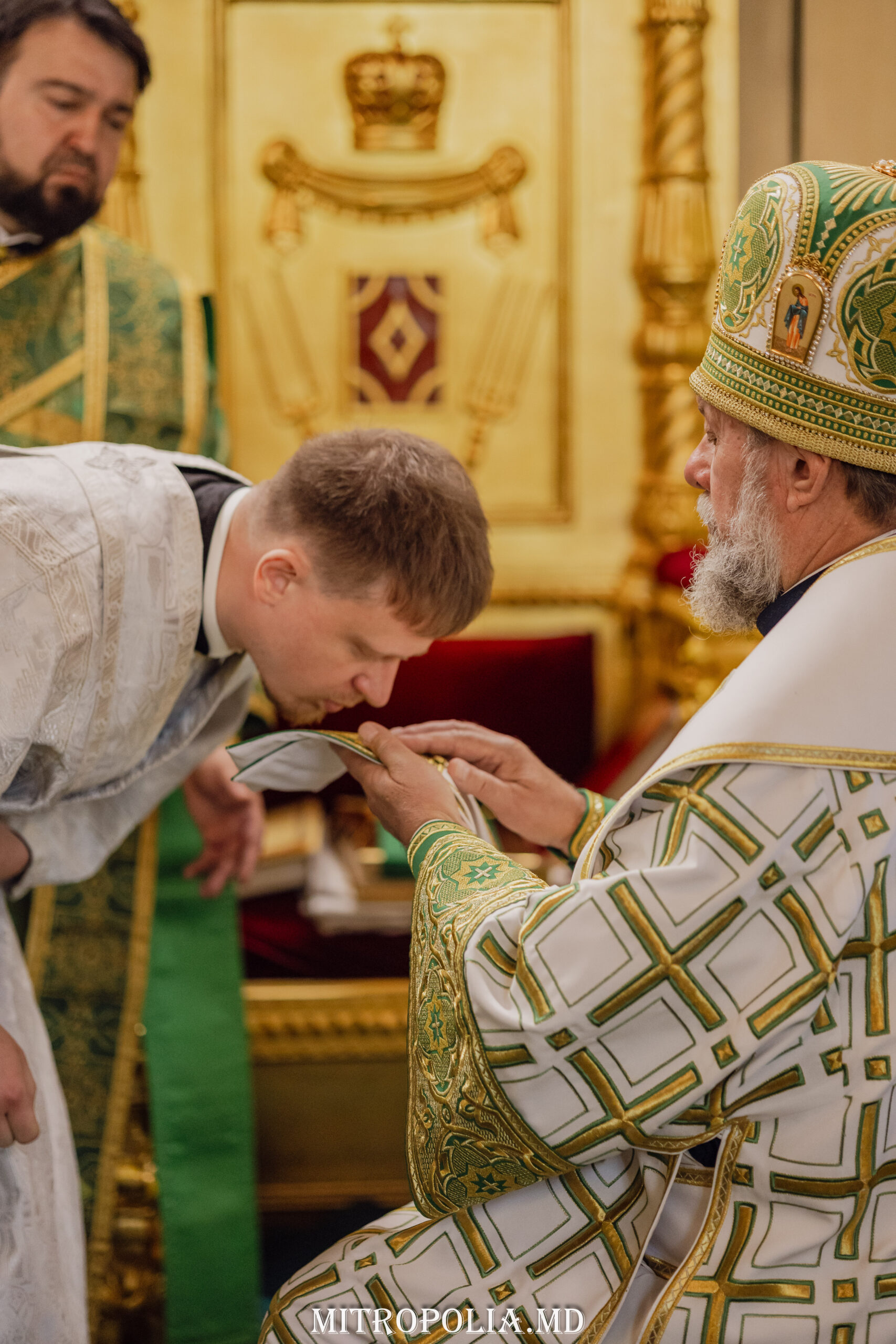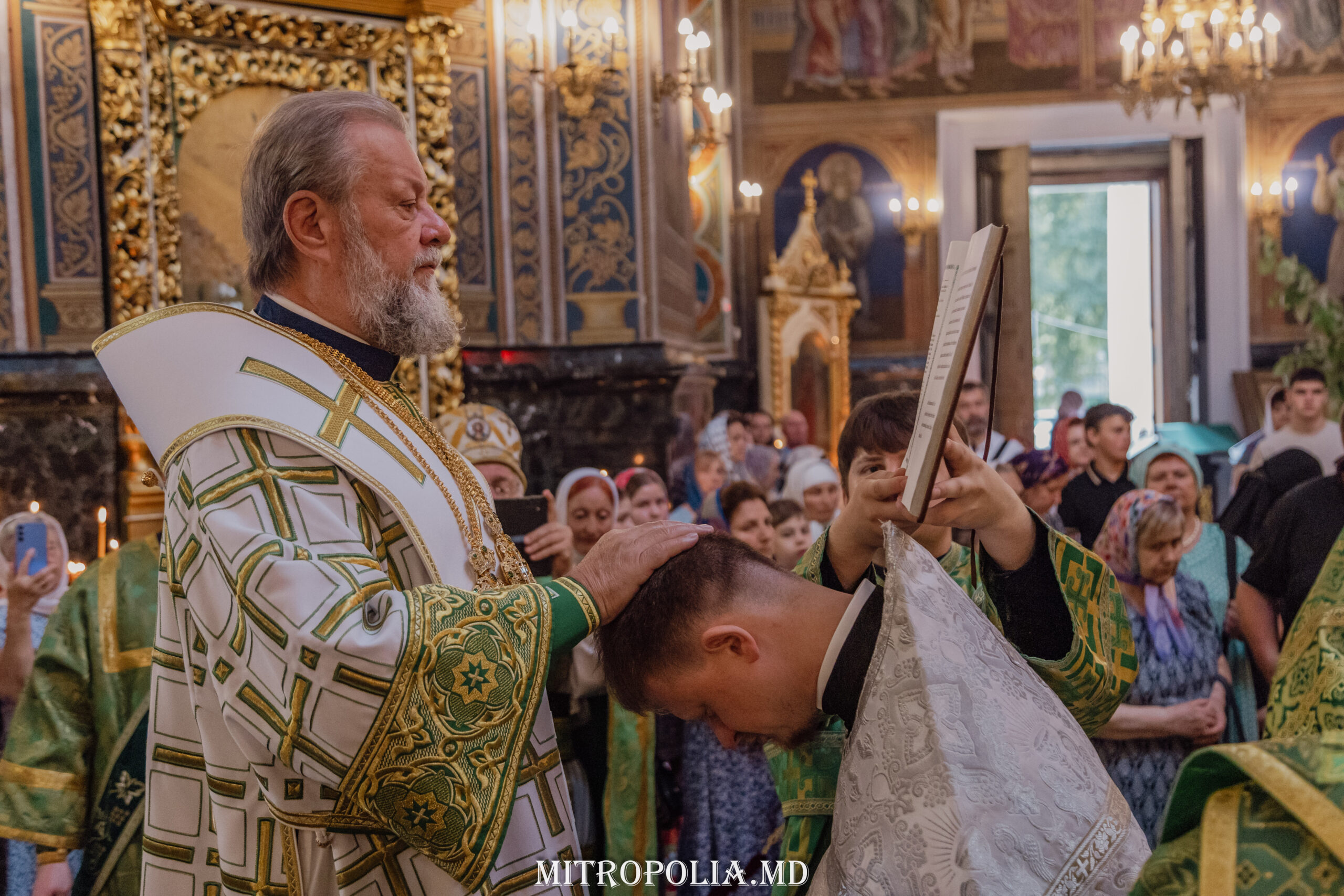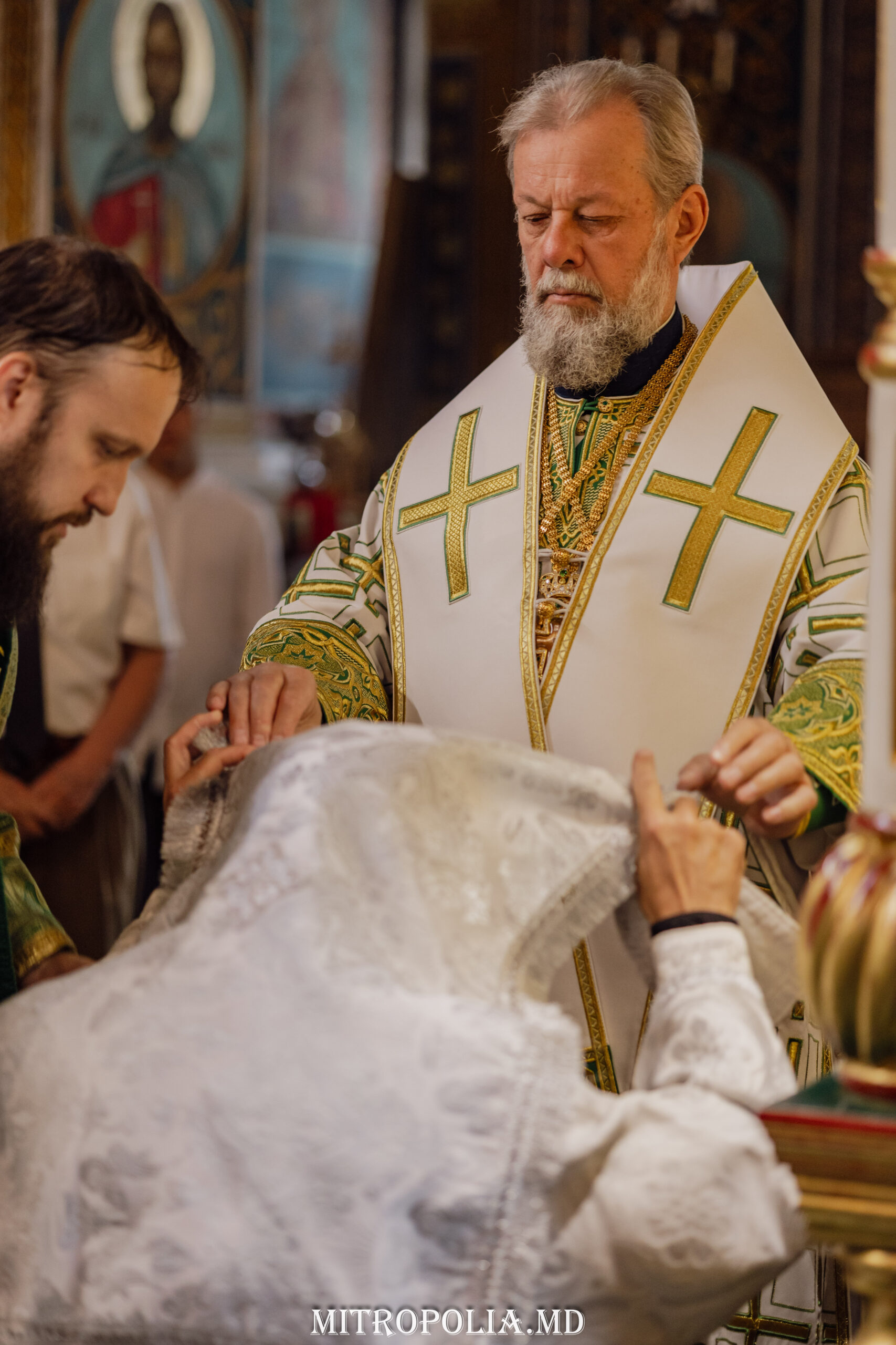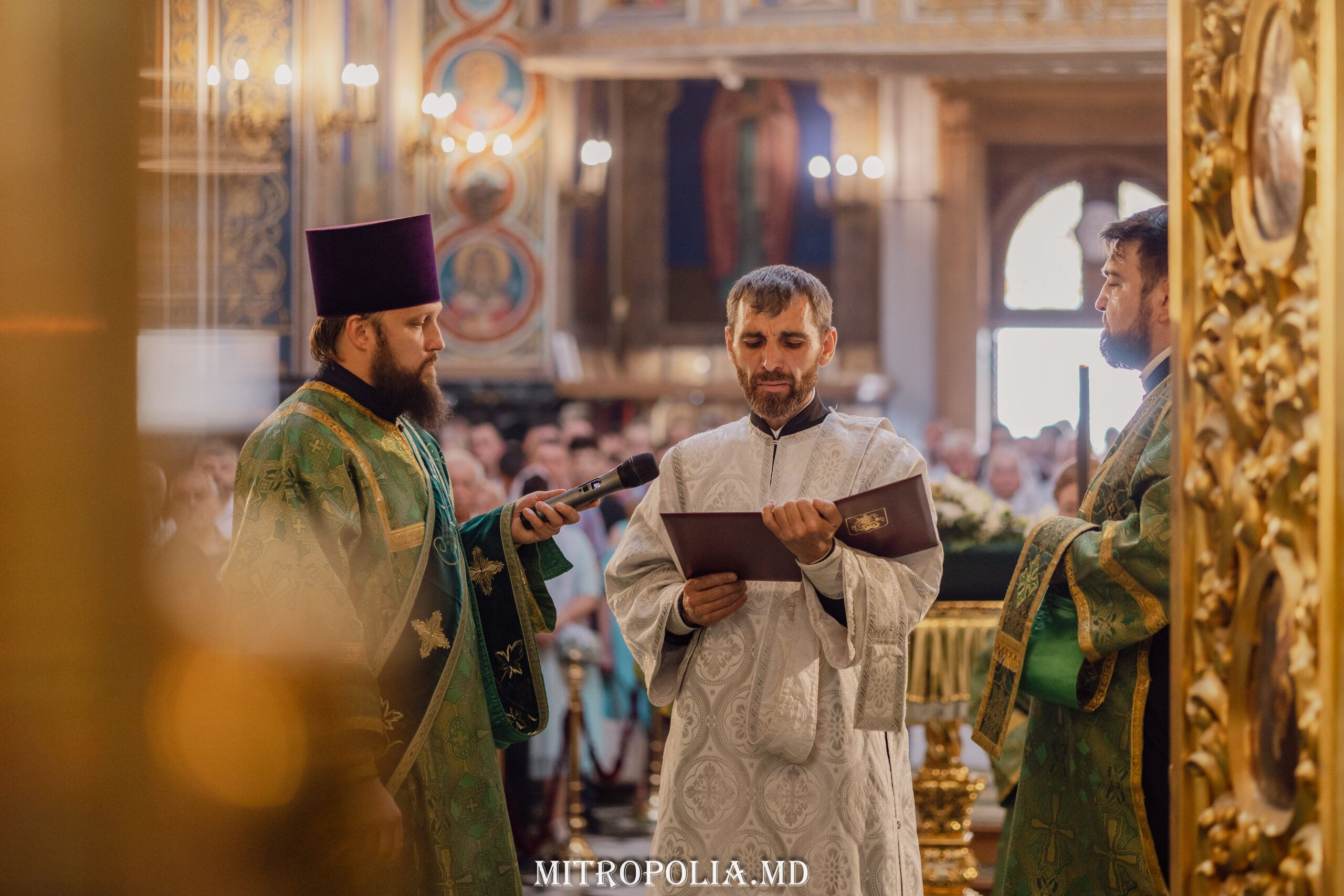 За Литургией Высокопреосвященный Митрополит Владимир совершил две хиротонии: в сан пресвитера был рукоположен диакон Сергей Кожокару для храма Рождества Пресвятой Богородицы, расположенного на территории пенитенциарного учреждения №15 — Крикова, и в сан диакона — выпускник факультета богословия Ясского Университета «Александр Иоанн Куза» (Румыния) Михаил Потороакэ для столичного храма святого великомученика Пантелеймона.