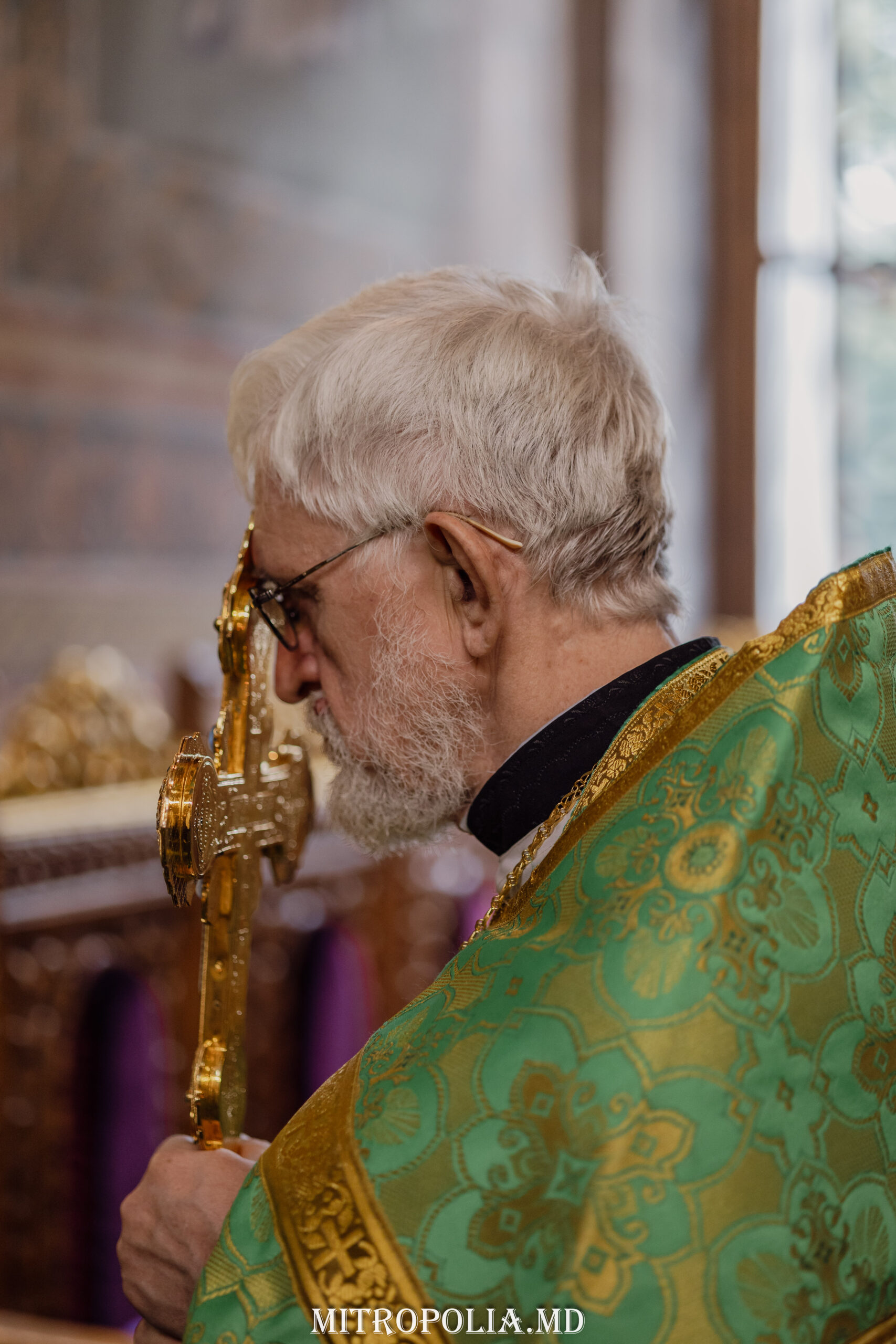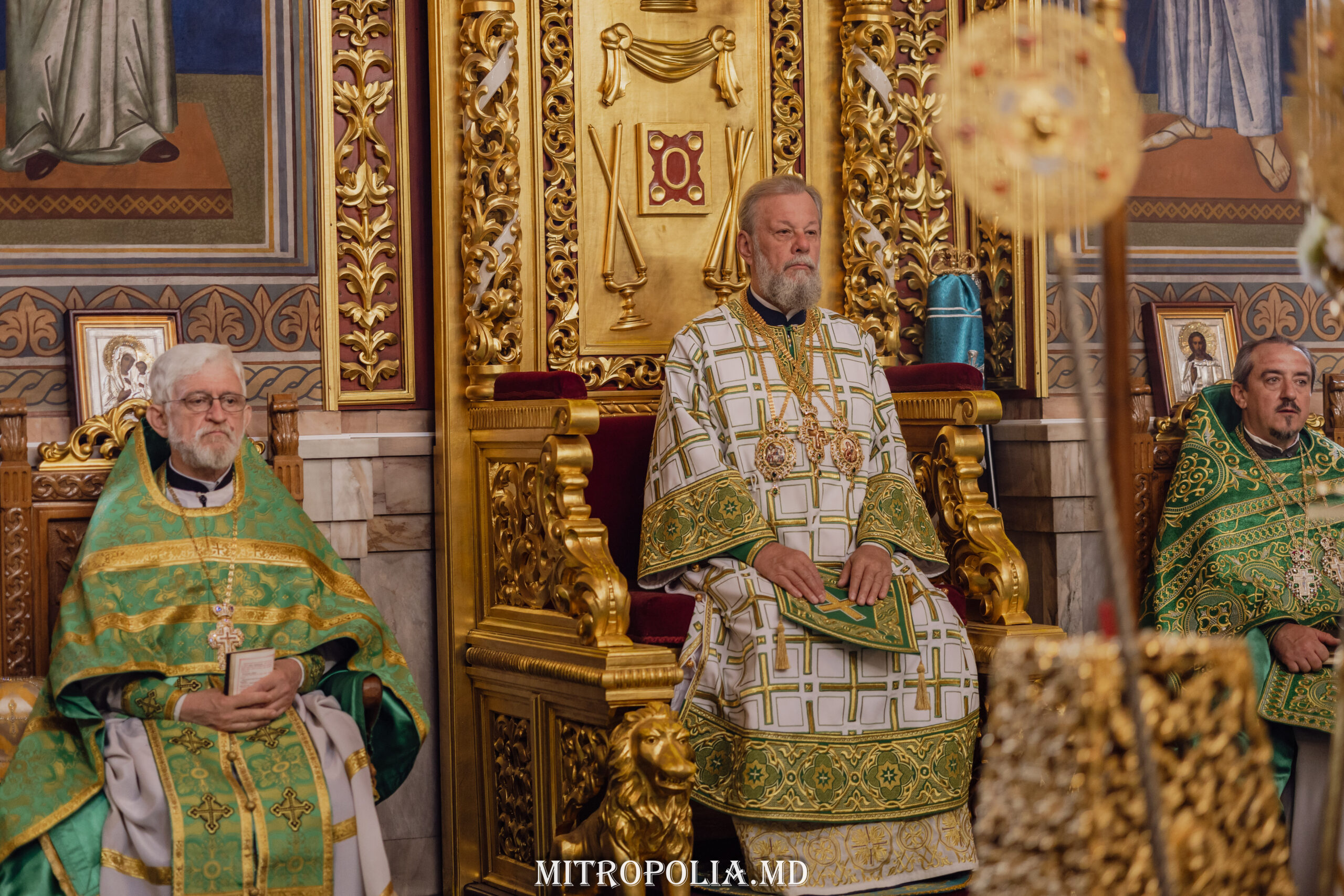 Его Высокопреосвященству сослужили: секретарь Молдавской митрополии митрофорный протоиерей Вадим Кейбаш, настоятель храма святого великомученика Пантелеймона г. Кишинева митрофорный протоиерей Валерий Потороакэ, соборное духовенство.