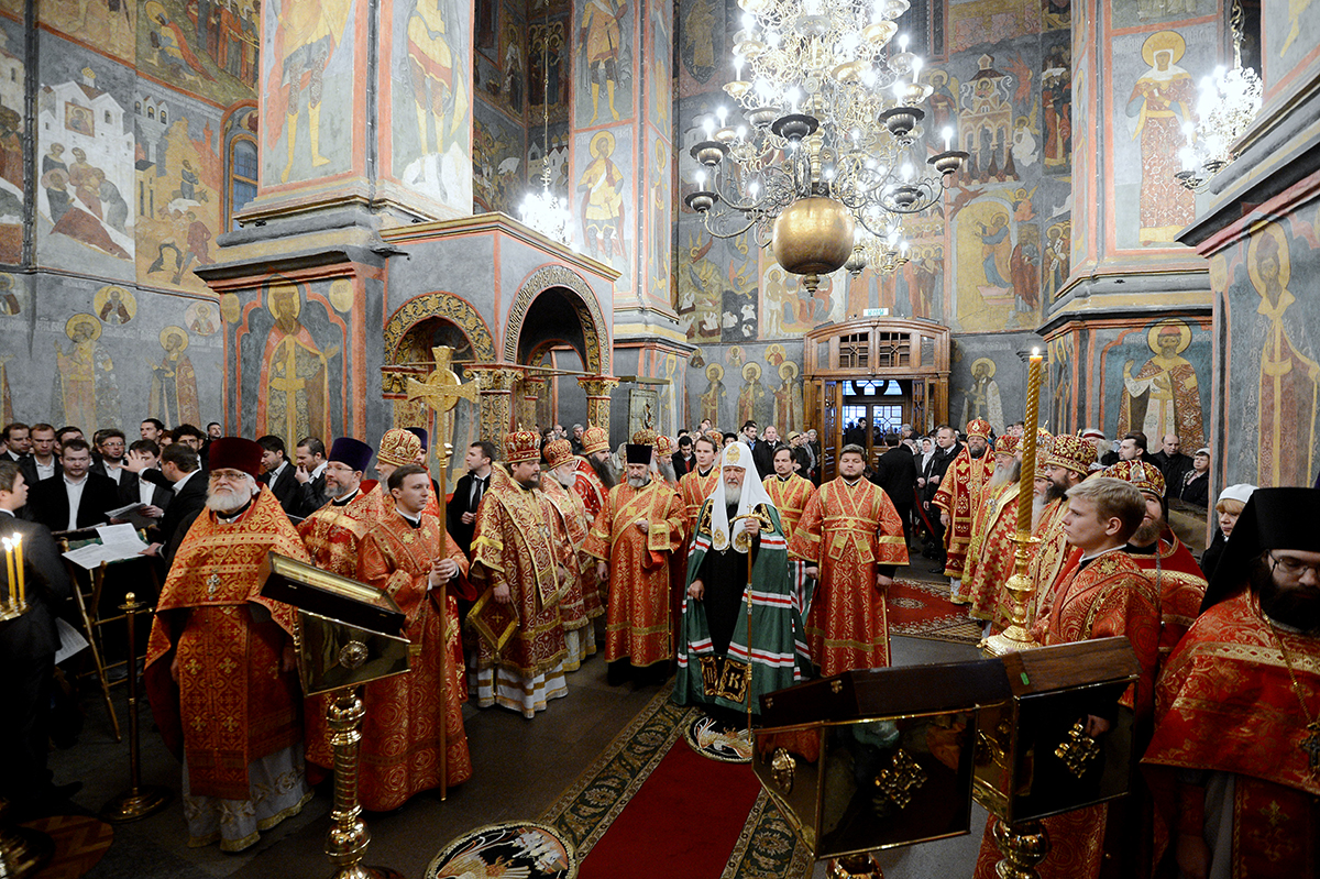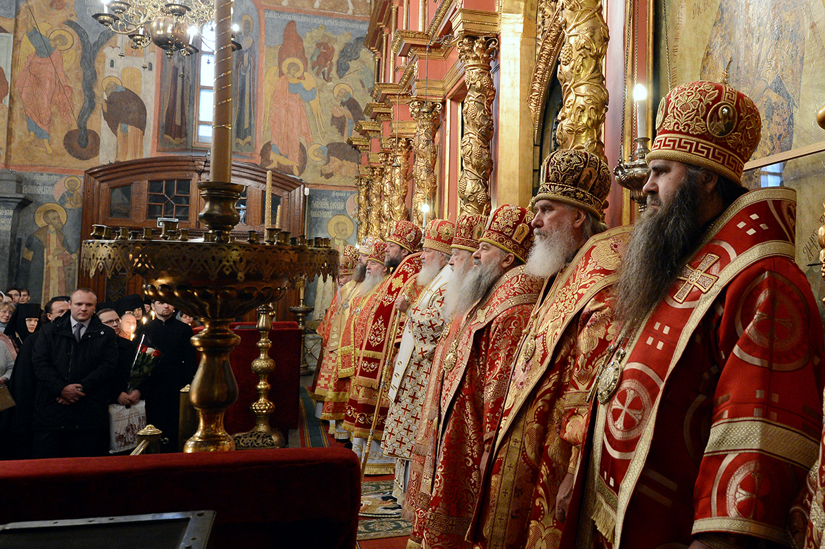По традиции за Божественной литургией в Архангельском соборе — храме-усыпальнице Московского великокняжеского и царского дома — были совершены молитвы о упокоении душ усопших рабов Божиих приснопамятных Предстоятелей Российския Церкви, строителей и правителей Святыя Руси, благоверных князей и княгинь, царей и цариц, и всех во власти бывших, попечение имевших о непорочной вере и с прилежанием управлявших страною нашей, на месте сем упокоения и в иных местех погребенных.