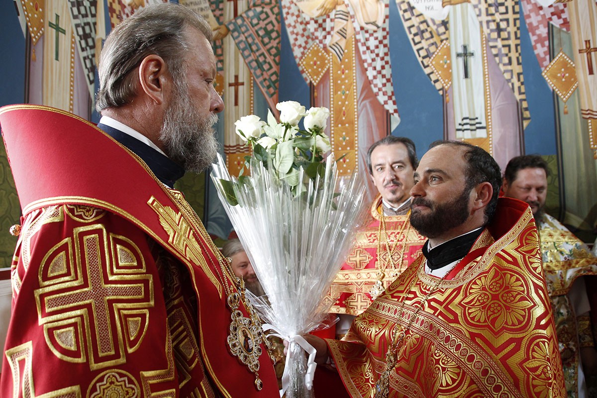 Богослужебные песнопения исполнял мужской хор «Гносис» под управлением регента Сергия Круду.