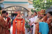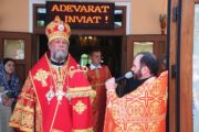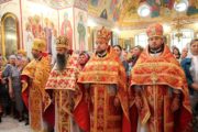 По заамвонной молитве последовали крестный ход вокруг храма с чтением Евангелия и благодарственный молебен.